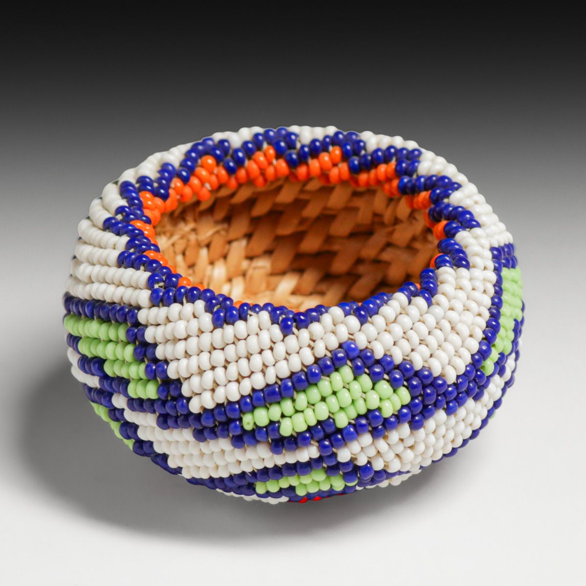 Miniature Native American Beaded Basket c1920s. Paiute or Washoe Tribe from the Yosemite to Reno, NV area. Excellent condition. 2 1/8"d x 1.25"h