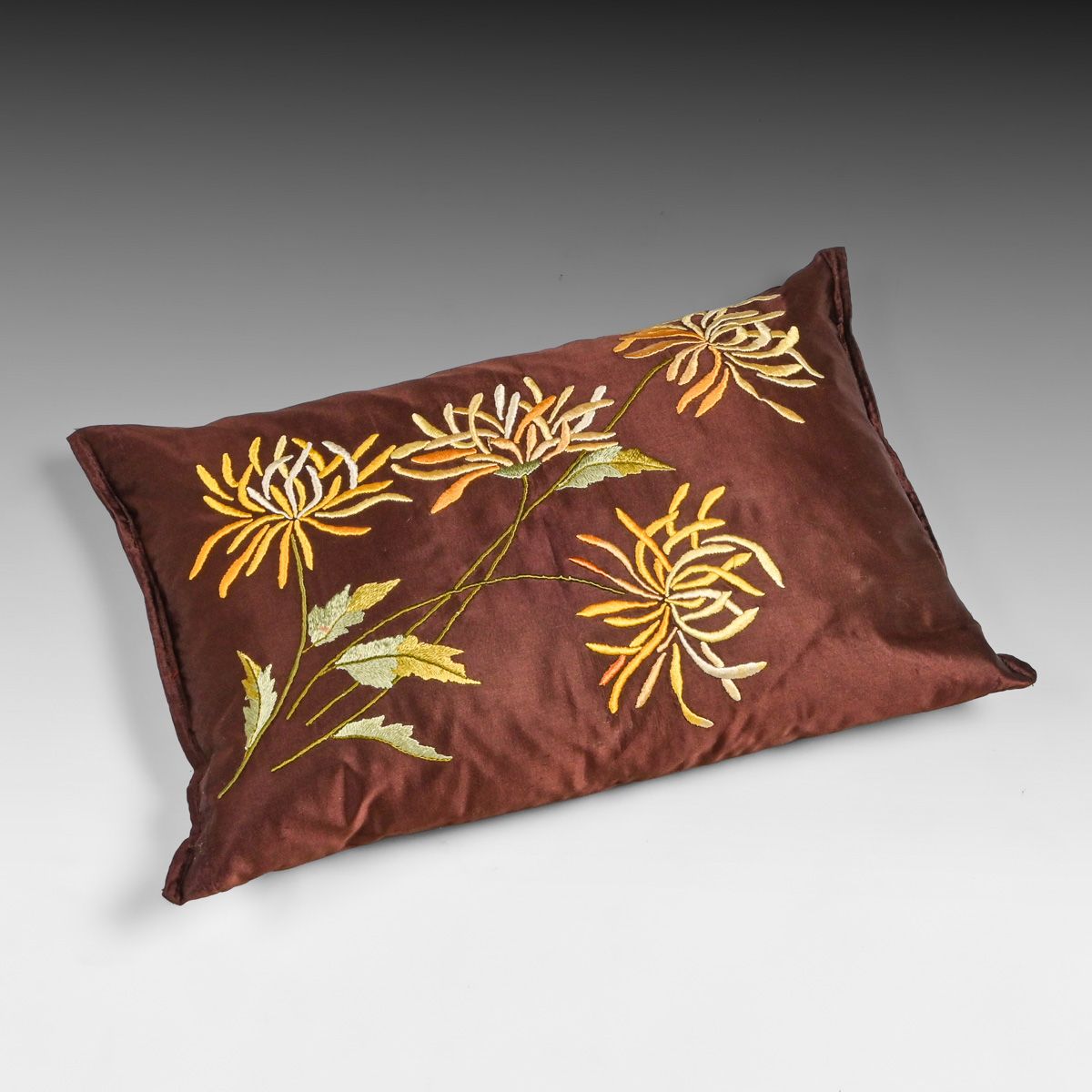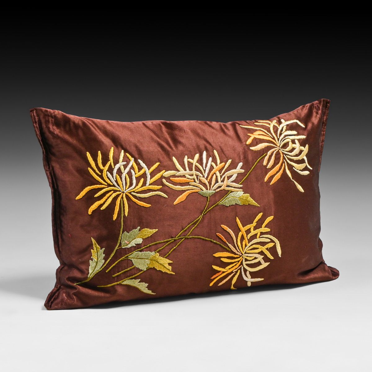 - Arts & Crafts Period Hand-Embroidered Silk Pillow c1910