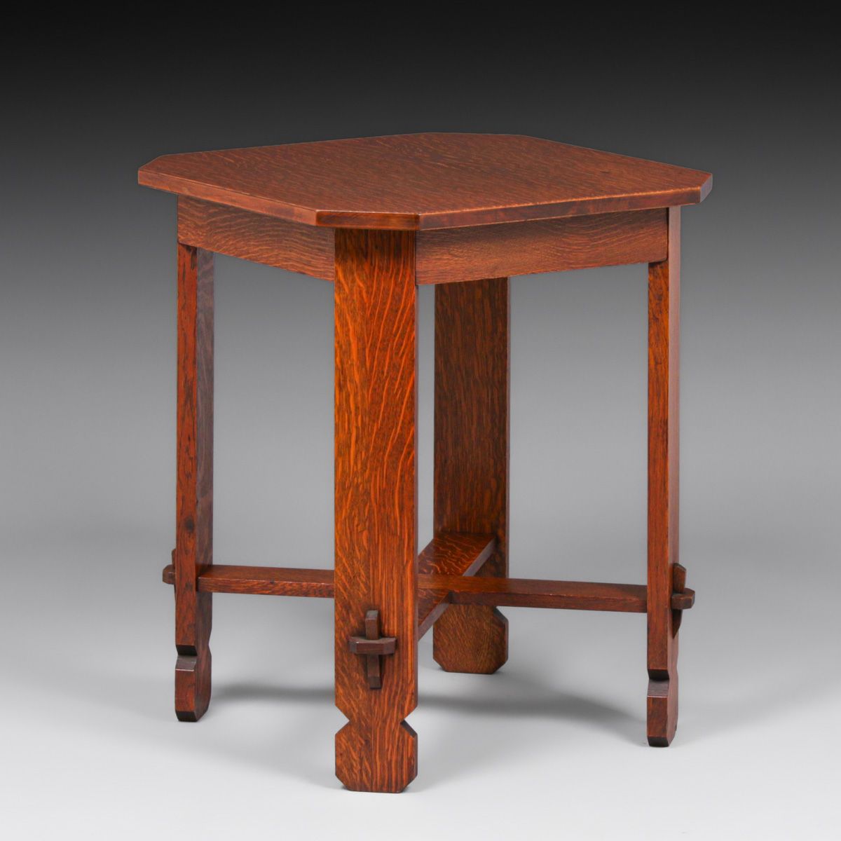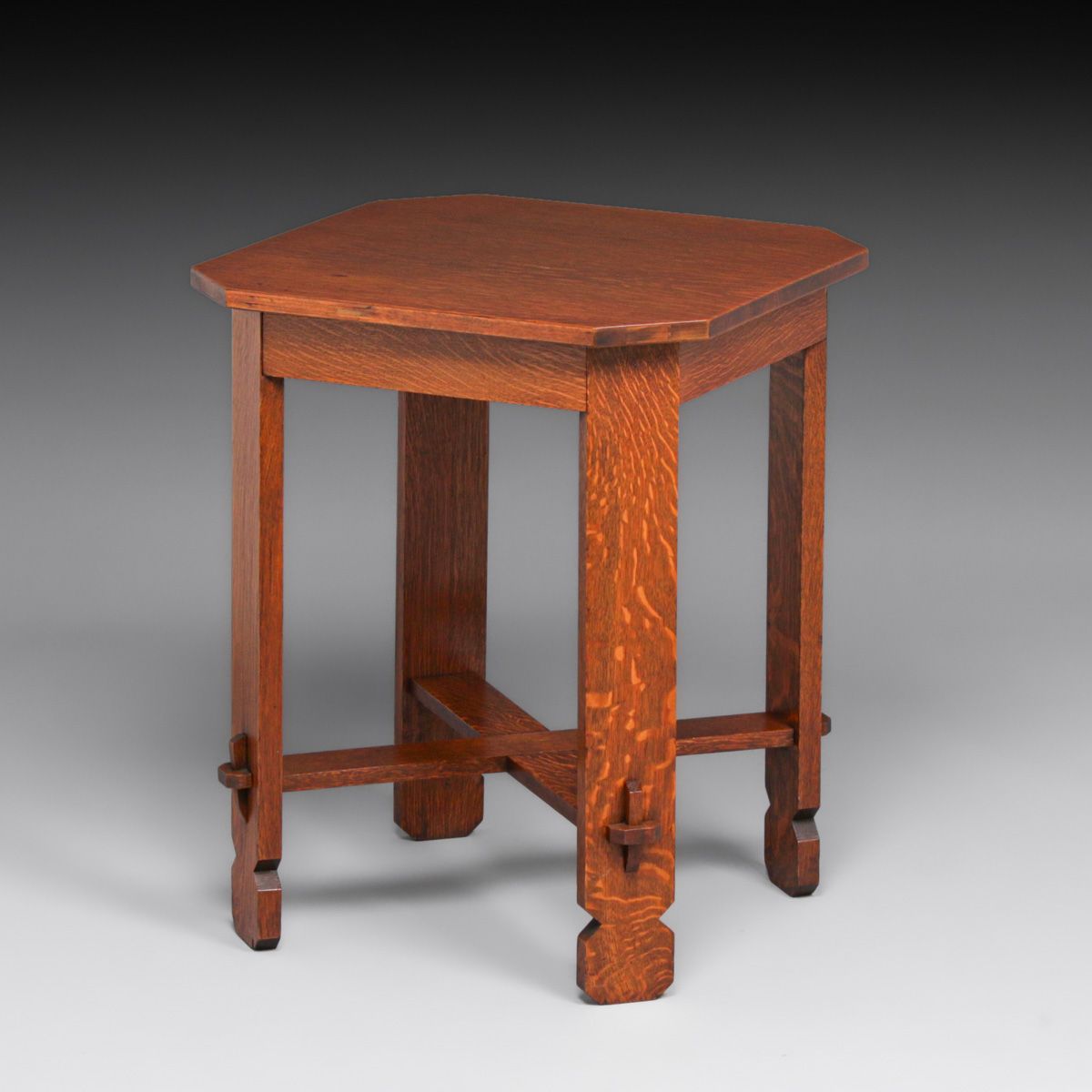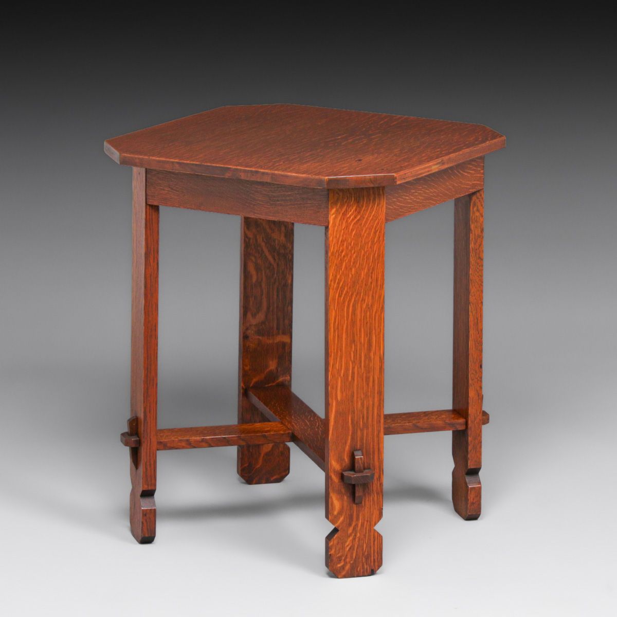 Arts & Crafts Period Clip-Corner Table c1905. Unsigned. Top refinished perfectly to match excellent original finish. Very sturdy. 29.25"h x 24"w x 24"d