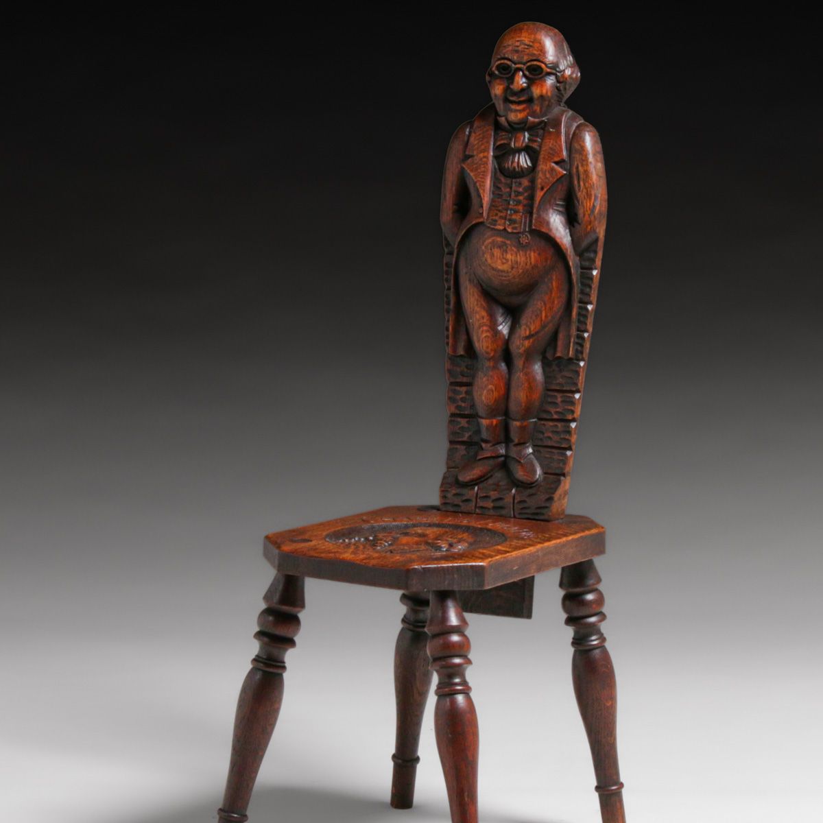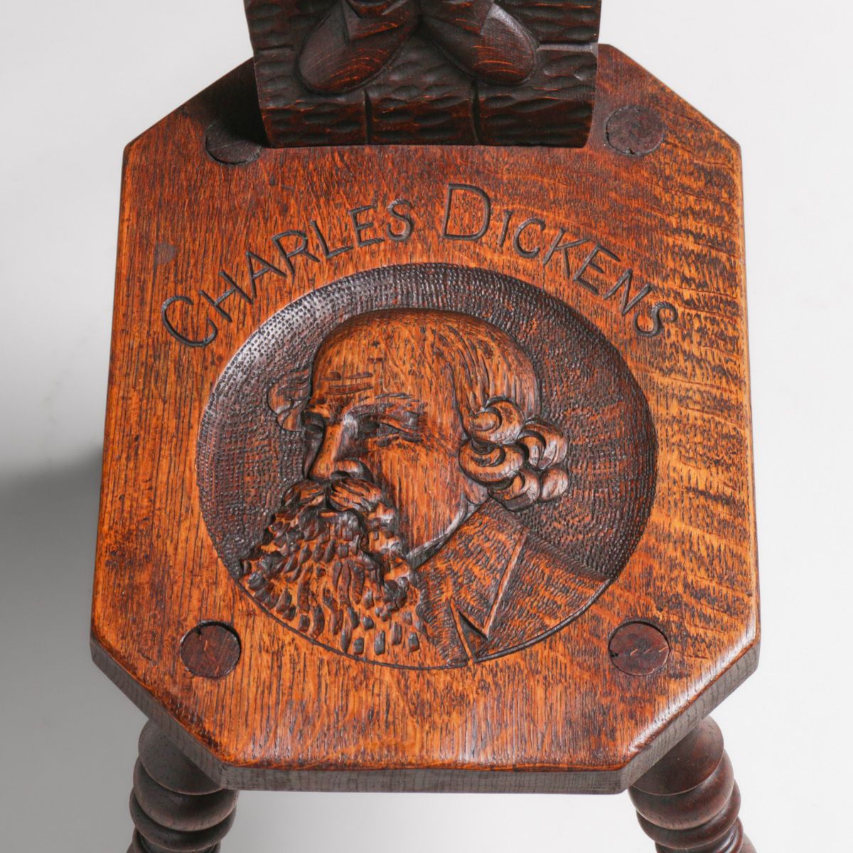 - Charles Dickens - Mr Pickwick Brittany Style Hand-Carved Oak Slipper Chair c1900