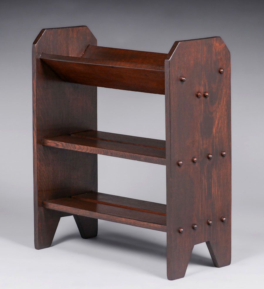Barber Brothers - Hastings, MI Book Trough Magazine Stand c1910. Signed. Very nicely refinished. Rock solid sturdy. 26"w x 31"h x 12"d SOLD