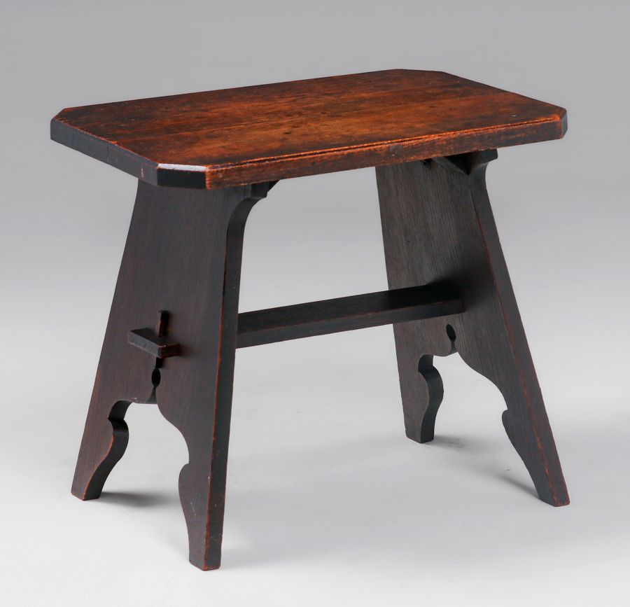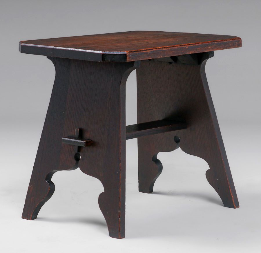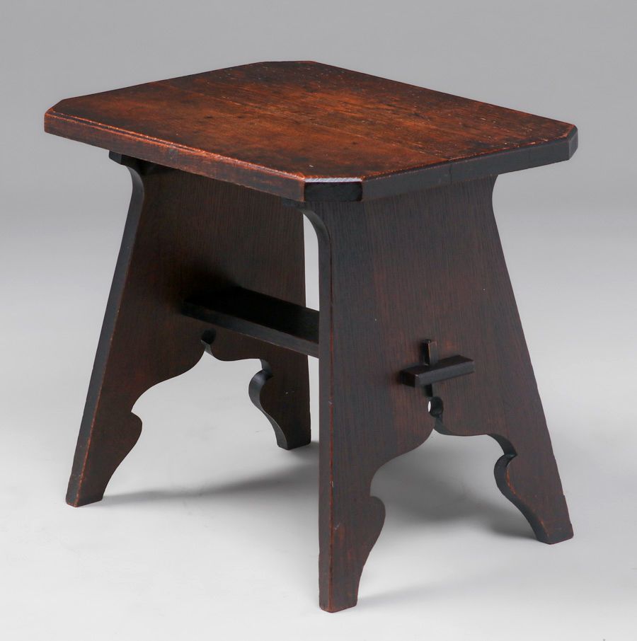 Barber Brothers Oak Footstool c1910. Unsigned. Excellent original finish. Very sturdy. 16"h x 18"w x 13.25"d SOLD