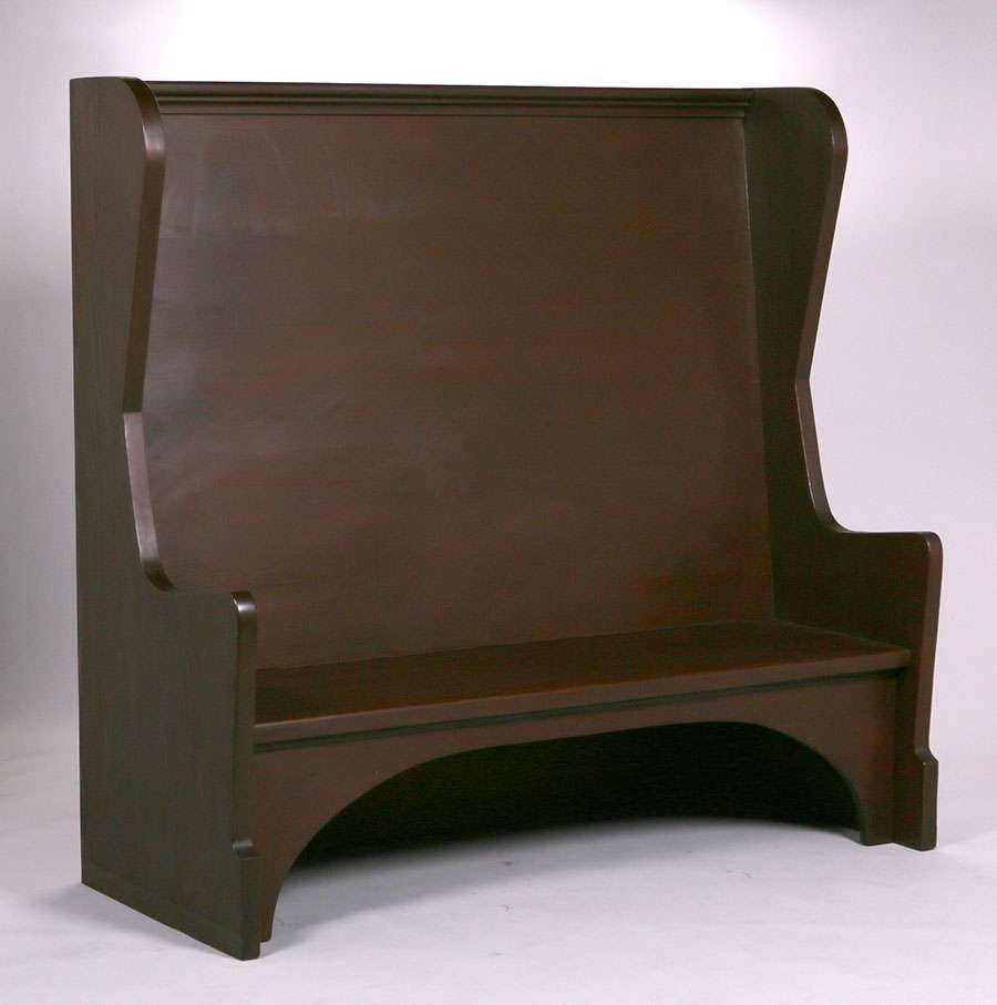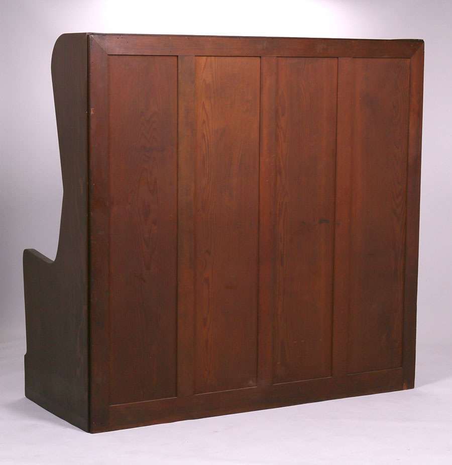 Bernard Maybeck Arts & Crafts High Back Redwood Bench c1922. Constructed and designed for the Berkeley Maybeck home, Underhill House, 9 Tamalpais Road, Berkeley. Unsigned. Very nicely refinished. Comes with letter of Provenance from The Underhill Family. 64”h x 66.75”w x 28”d SOLD