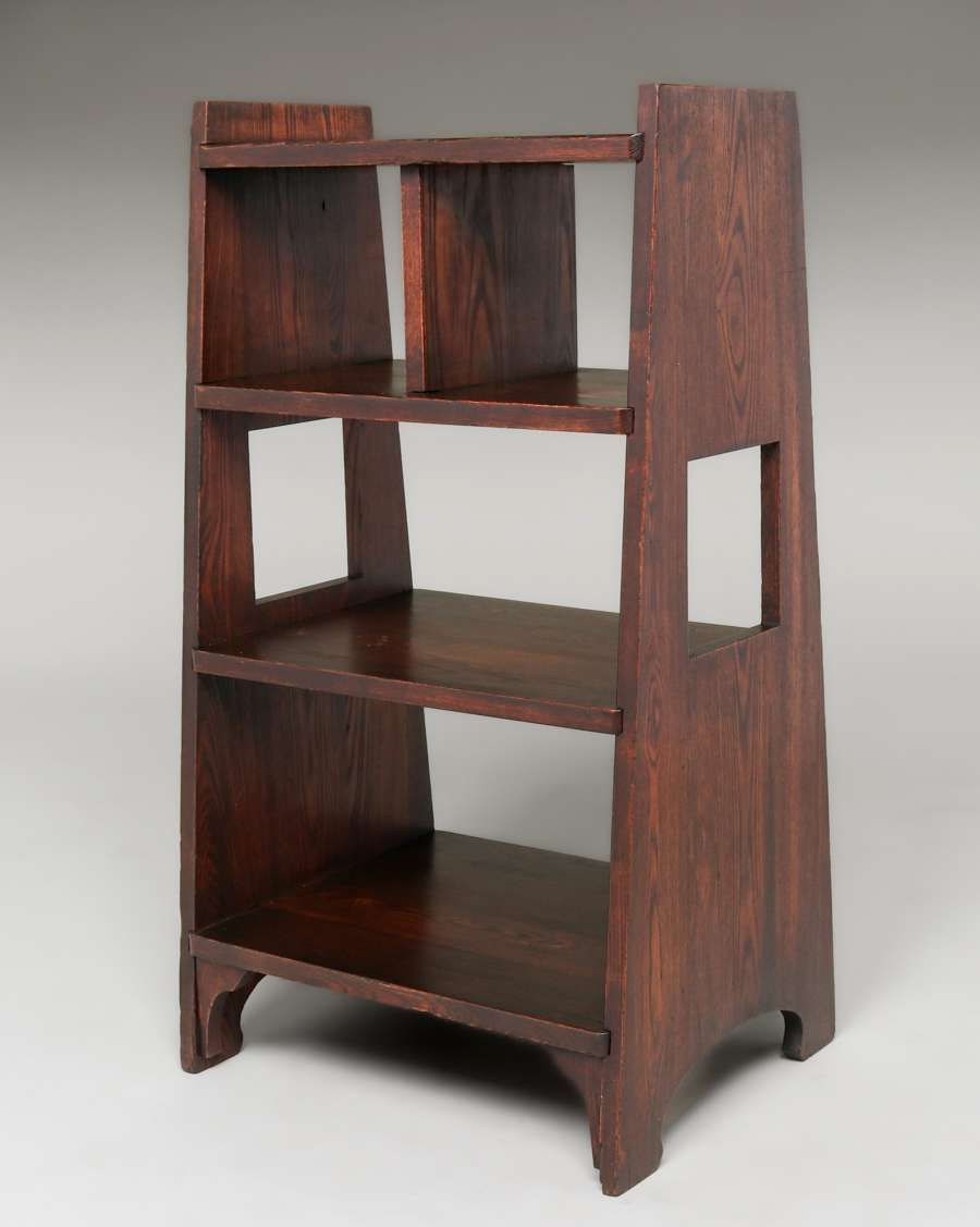 Brooks Chestnut Cutout Magazine Stand c1910. Unsigned. Excellent original finish. 33"h x 18"w x 15"d at base x 10"d at top SOLD