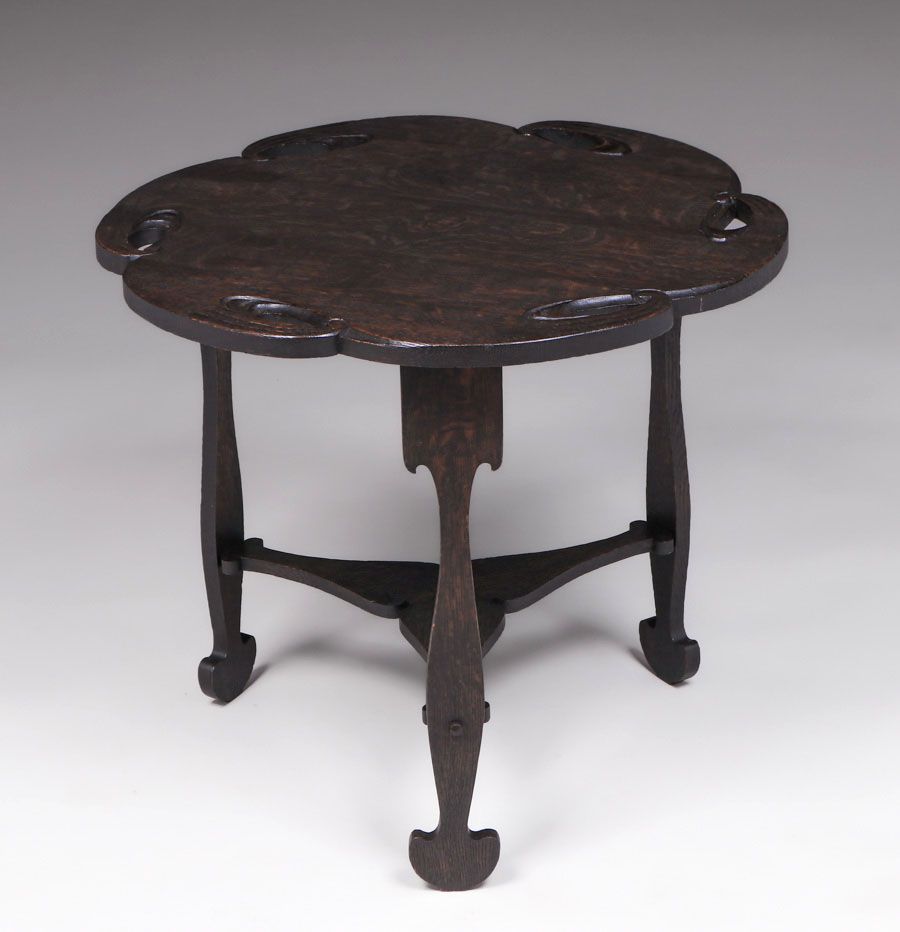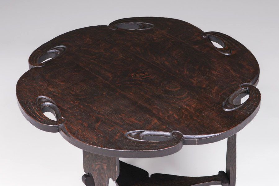 Charles Rohlfs Hand-Carved Oak Taboret c1900. Signed. Excellent original finish. 21.5"d x 19"d SOLD