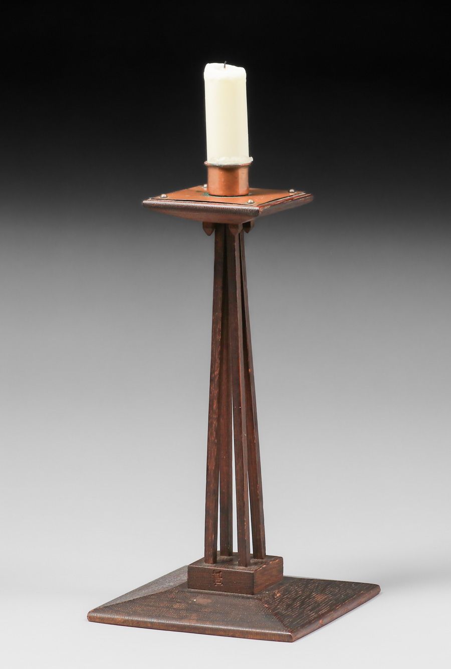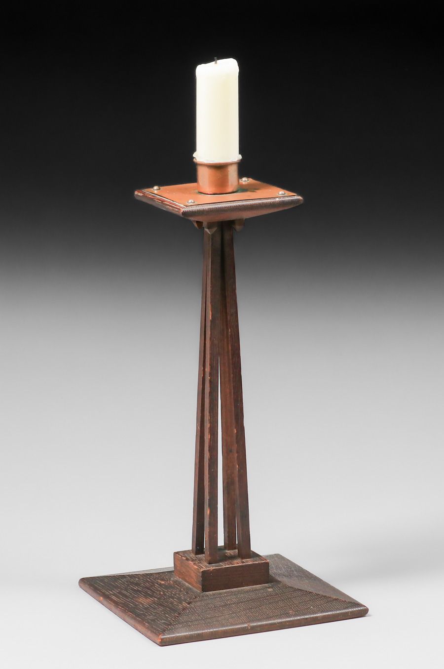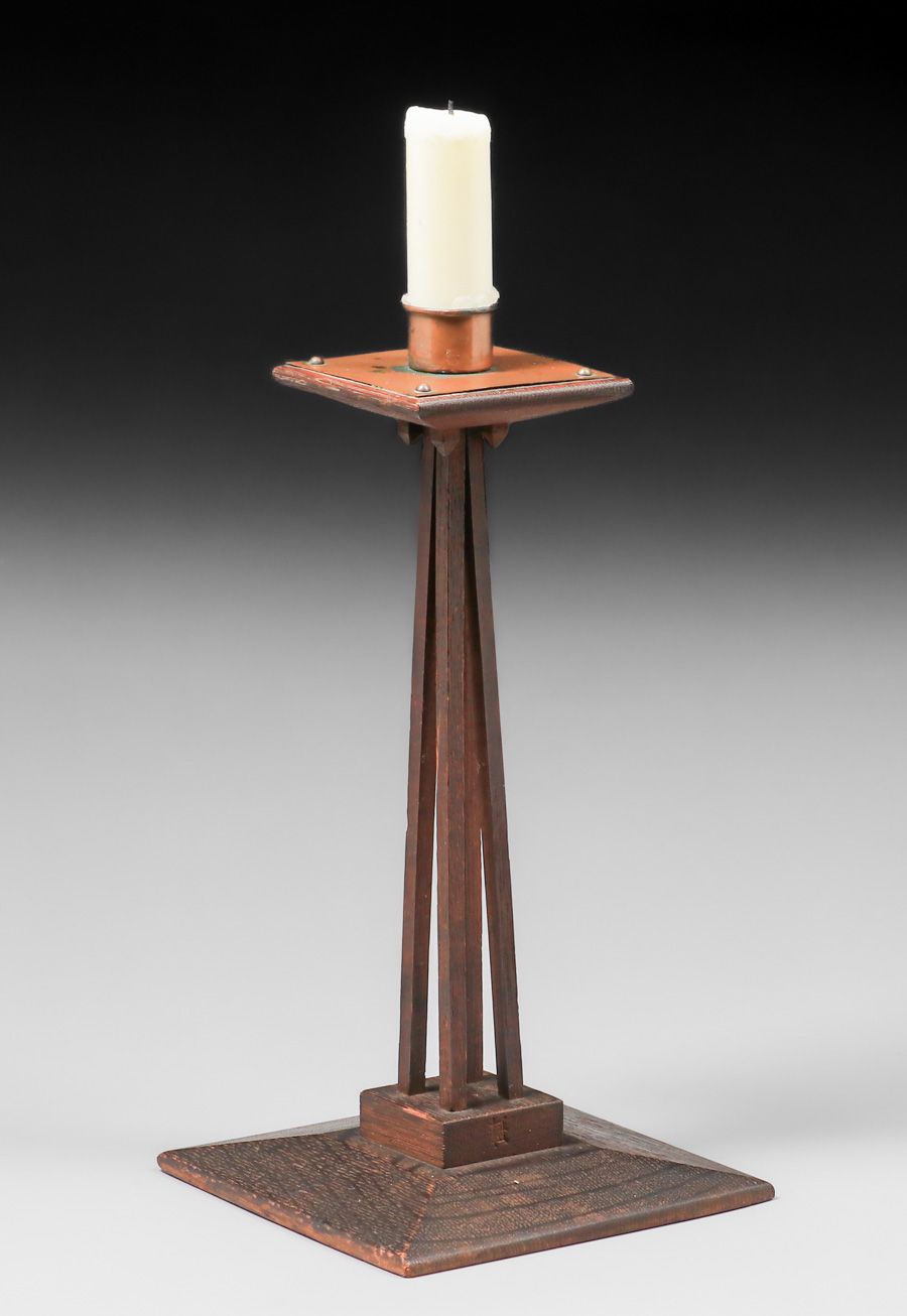 - Charles Rohlfs Oak & Copper Candlestick c1905