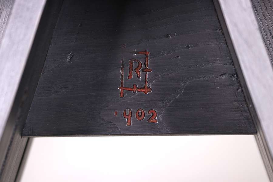 Charles Rohlfs square cutout taboret dated 1902. Signed. Top refinished perfectly to match original finish base. 18"h x 14" x 14" SOLD