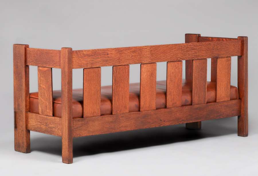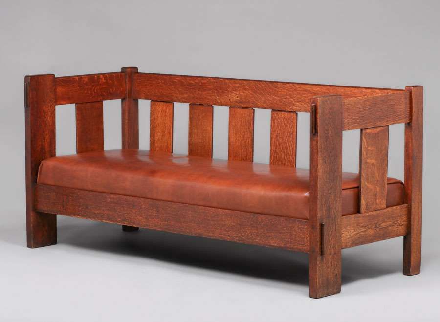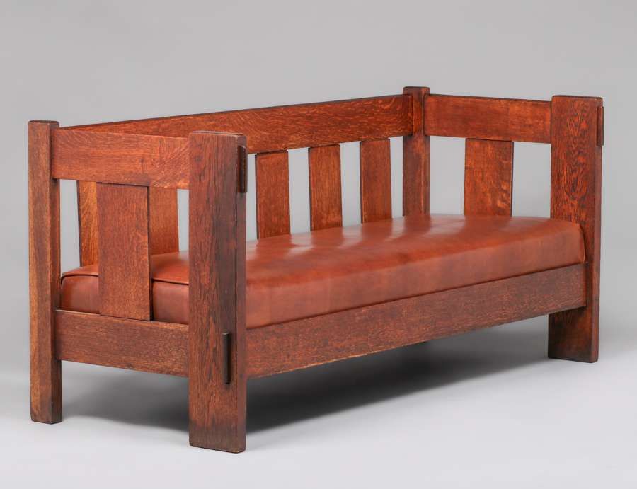 Charles Stickley Evenarm Settle c1910. Signed. Very nicely refinished. 72.5"w x 33.5"h x 30"d SOLD