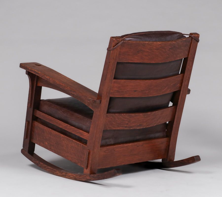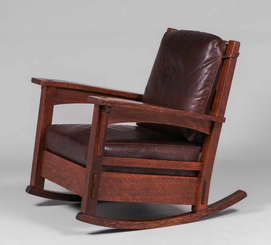 Charles Stickley Massive Bertram Rocker c1910. Unsigned. Excellent original finish. 36"h x 34"w x 38"d SOLD