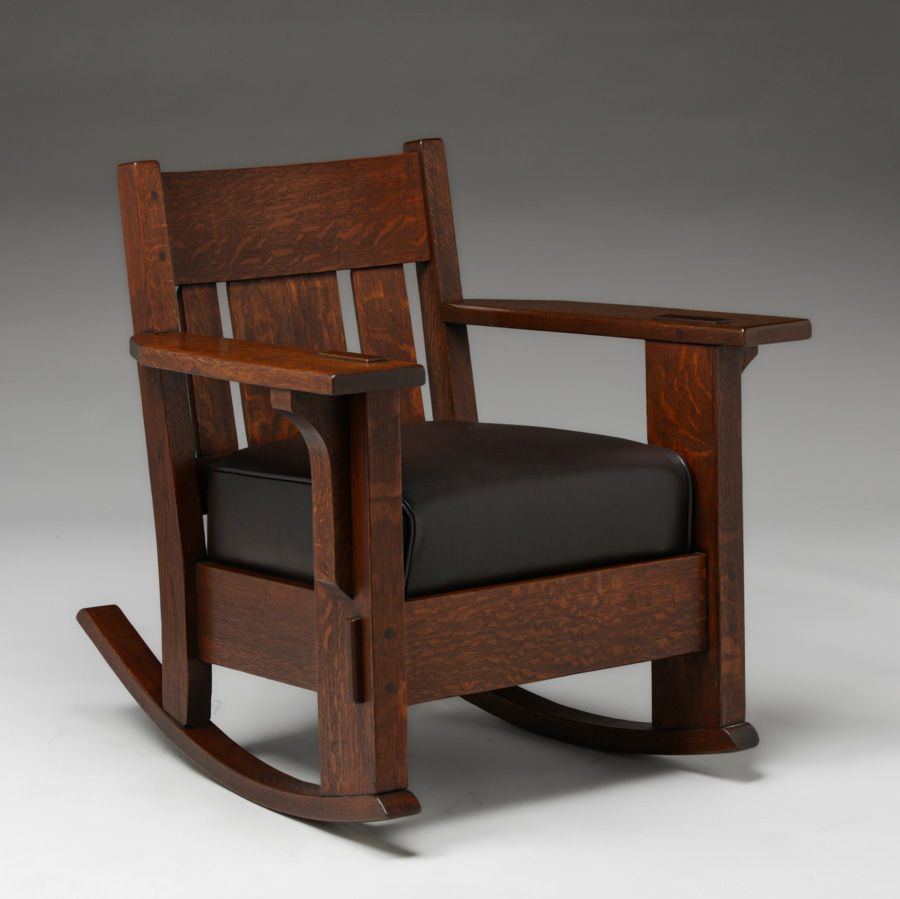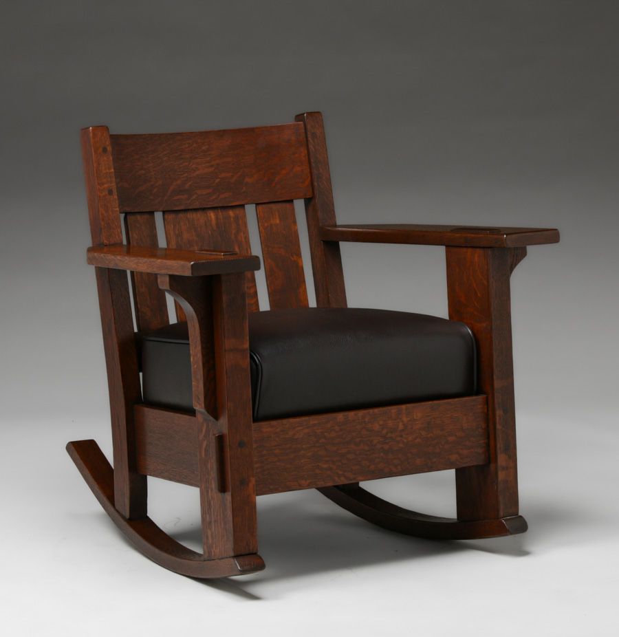 Charles Stickley Massive Oak Rocker c1910. Unsigned. Very nicely refinished. 30.5"h x 30.25"w x 31"d