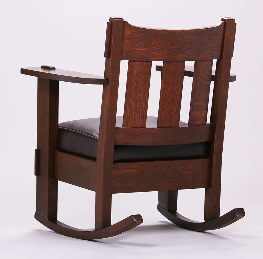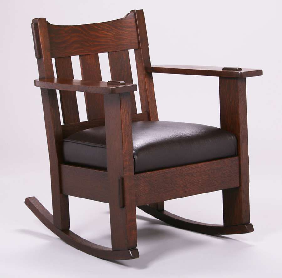 Charles Stickley rocker. Unsigned. Refinished. 33.25"h x 29"w SOLD