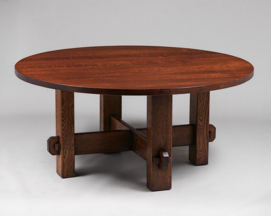 Massive Charles Stickley 66"d Fixed-Top Dining Table c1910. Unsigned. Very nicely refinished. 66"d x 30"h $12,000
