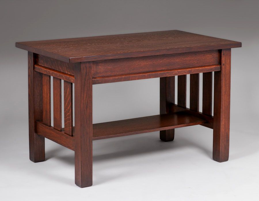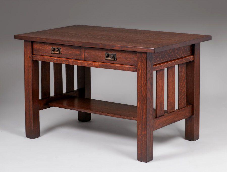 - Massive Charles Stickley Two-Drawer Slatted Library Table c1910