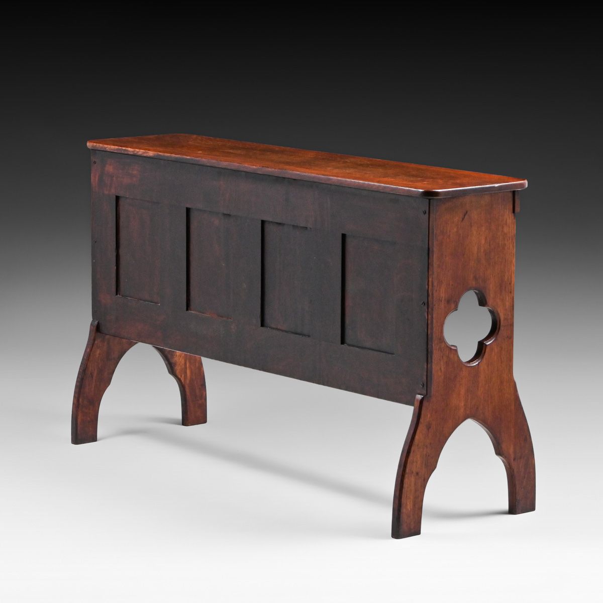 Arts & Crafts Oak Gothic Bench c1900. Unsigned. Top refinished perfectly to match excellent original finish. 48.75"w x 16.25"d x 29"h