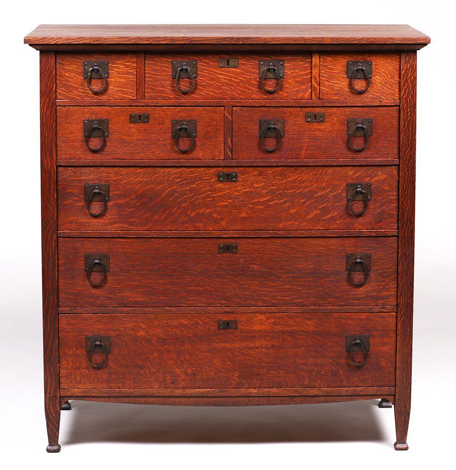 Grand Rapids 8-drawer dresser c1905. Unsigned. Top refinished perfectly to match original finish. 43.5"h x 41"w x 20.5"d SOLD