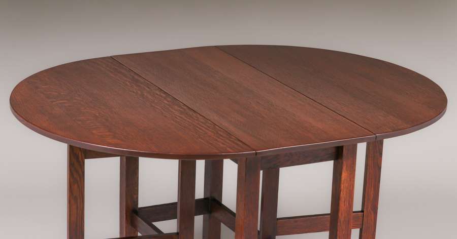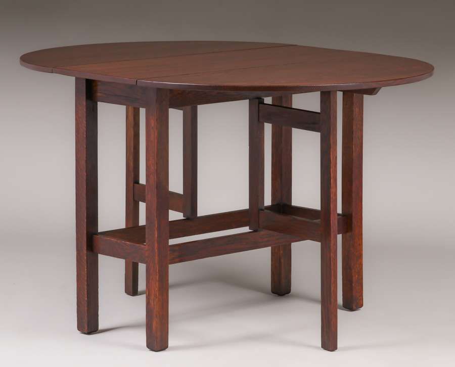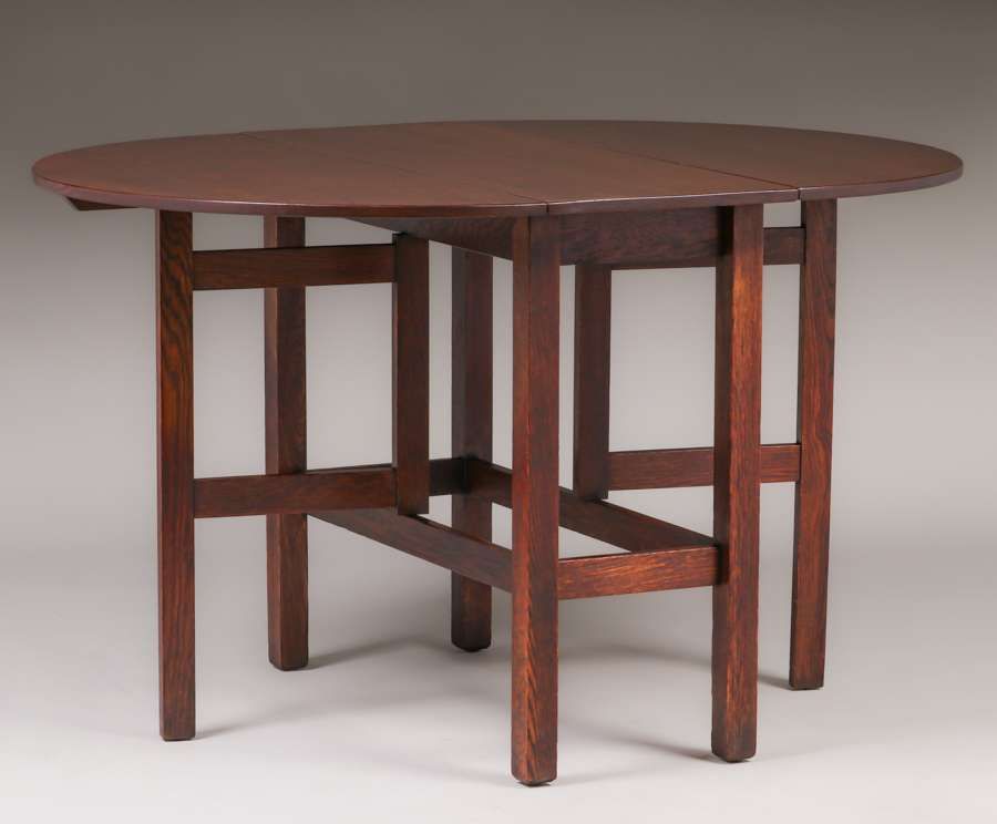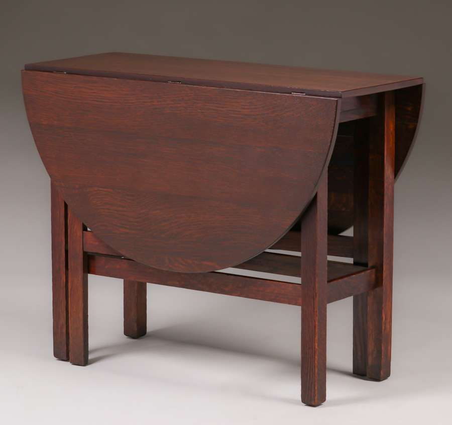 Grand Rapids Dropleaf Table c1910. Unsigned. Top refinished perfectly to match original finish base. Very sturdy. 38”w x 15"d x 30" (38" x 50" when open) $2200