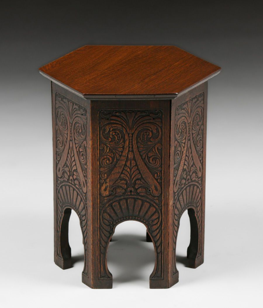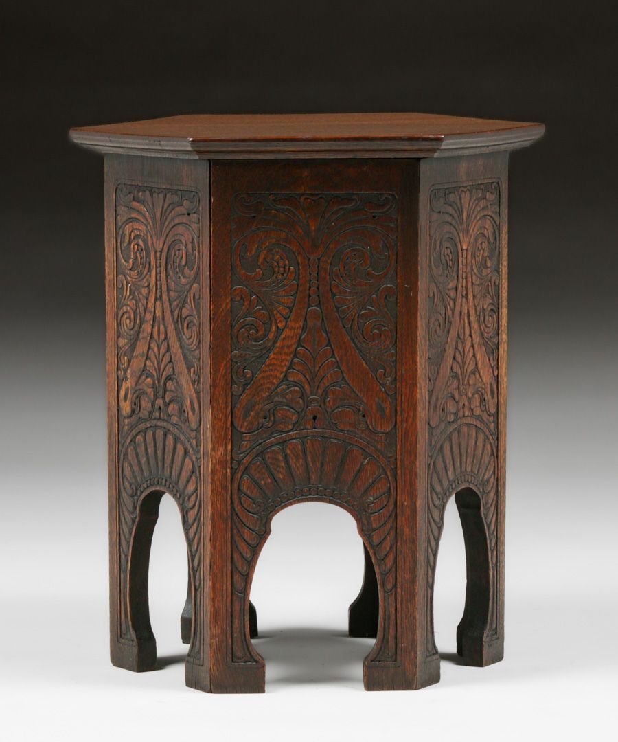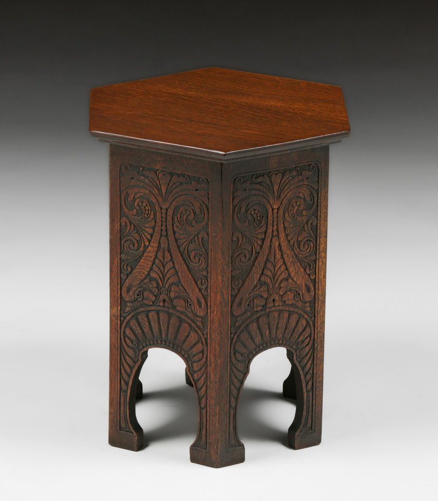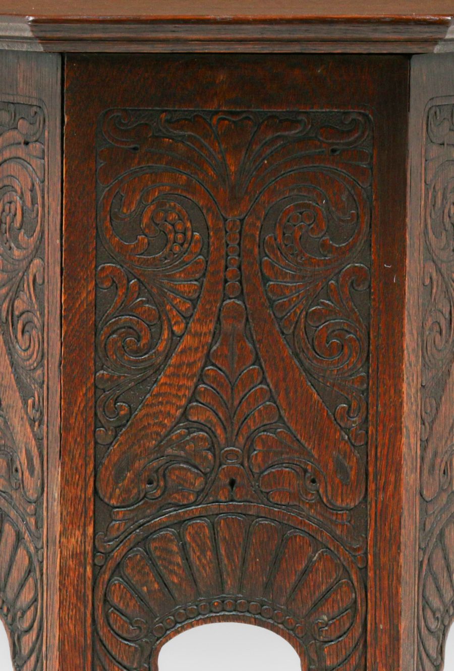Grand Rapids Moorish Design Oak Taboret c1900. Unsigned. Top refinished perfectly to match excellent original finish. 18"h x 16.25"d