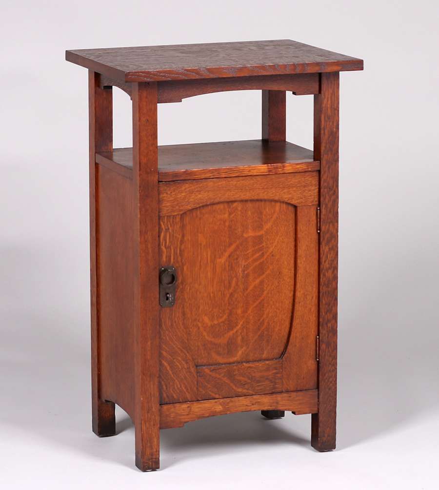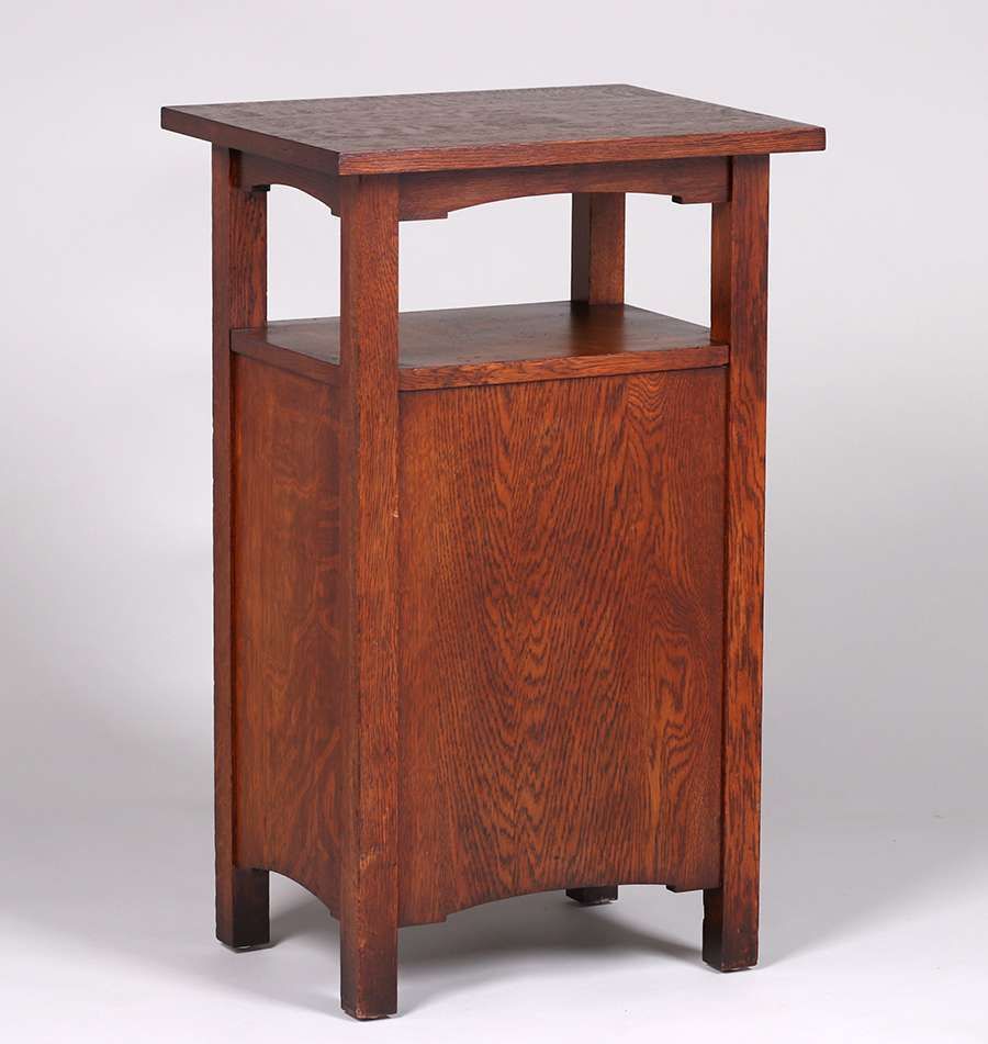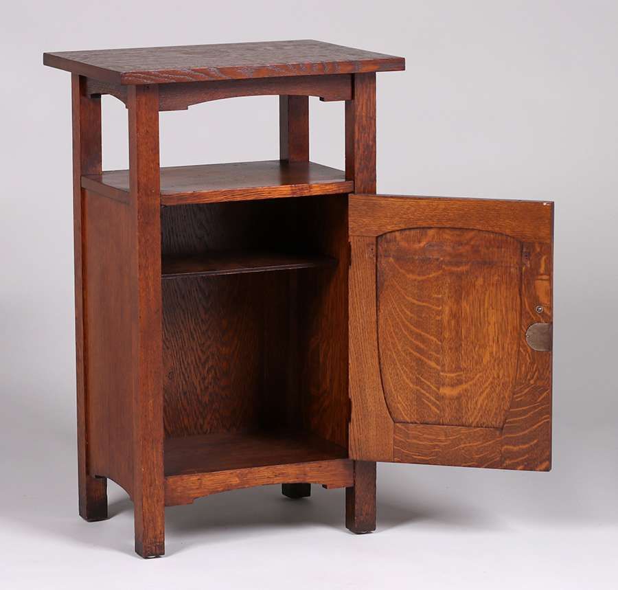 Grand Rapids one-door nightstand c1910. Unsigned. Top refinished. Base has original finish. 31"h x 19"w x 15"d SOLD