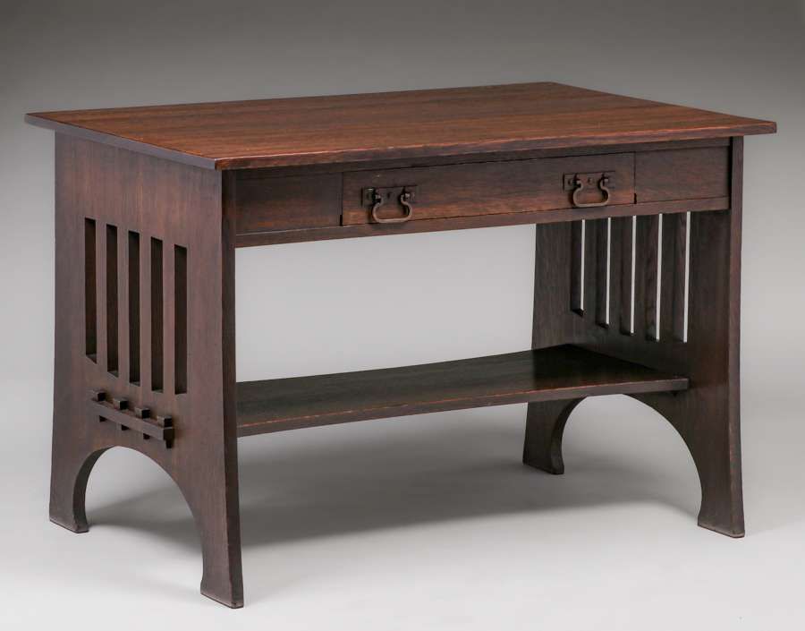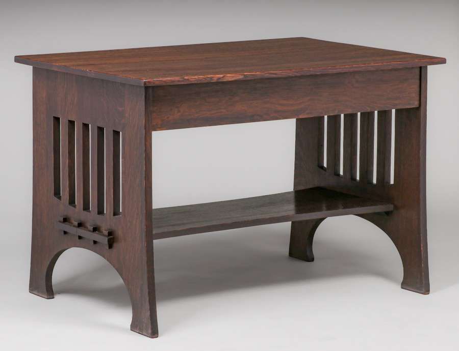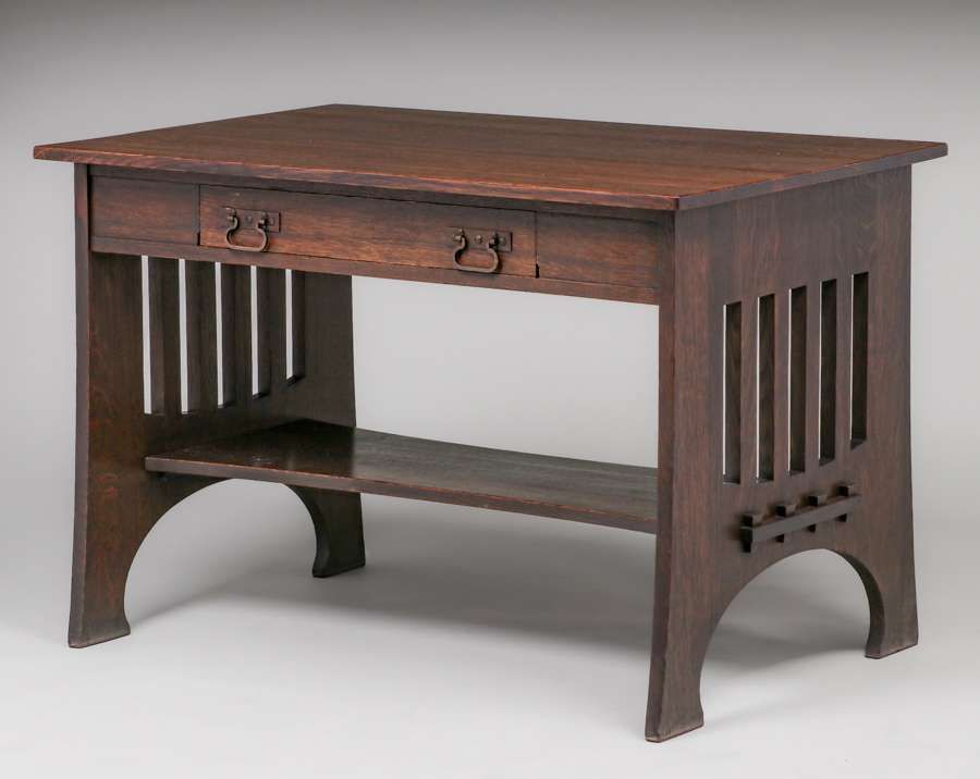 Grand Rapids One-Drawer Library Table c1905. Unsigned. Color added to original finish. Rock solid sturdy. 42"w x 28"h x 27.5"d SOLD