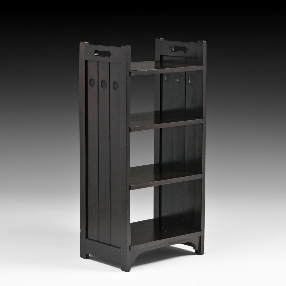 Grand Rapids Circle Cutout Poplar Magazine Stand c1910. Unsigned. Excellent original finish. 36"h x 17"w x 12"d