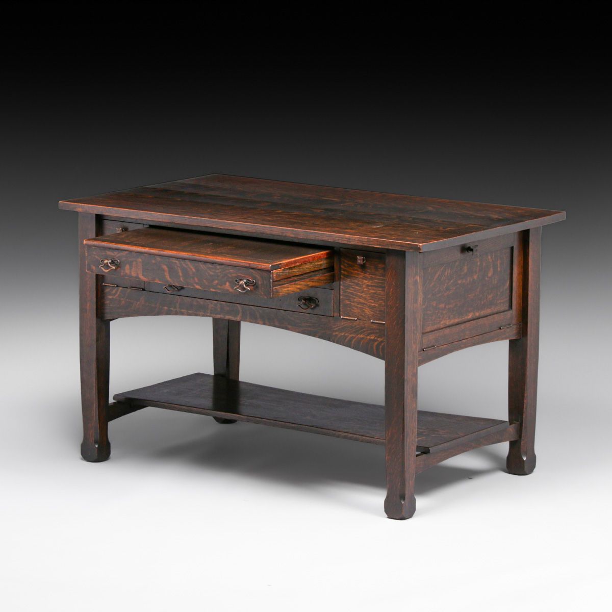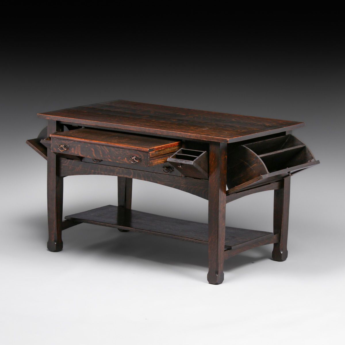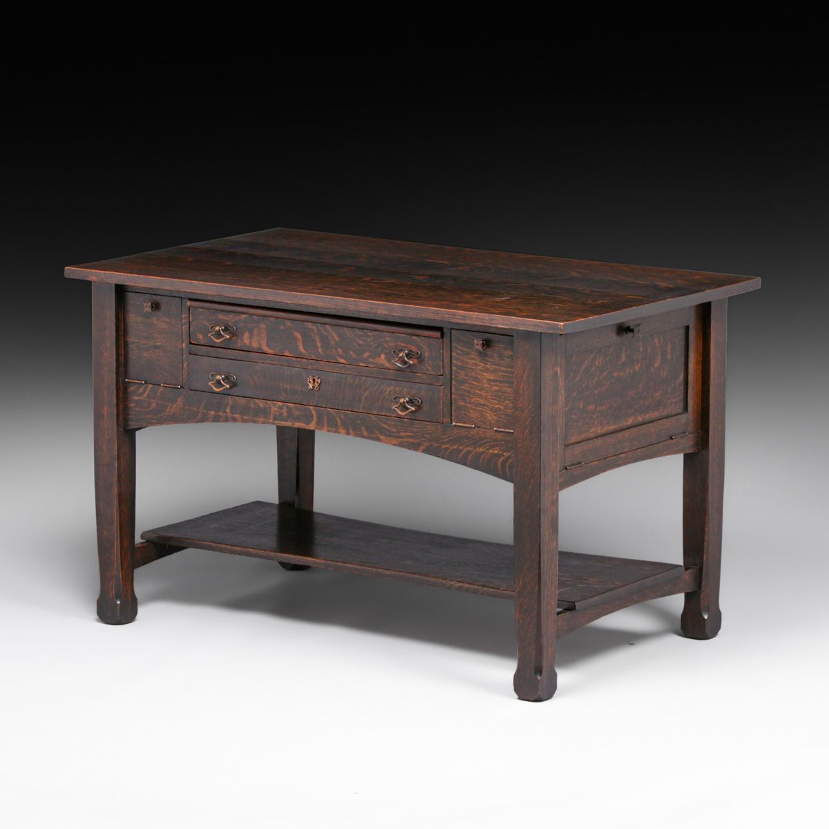 - Grand Rapids Two-Drawer Arts & Crafts Oak Desk c1910