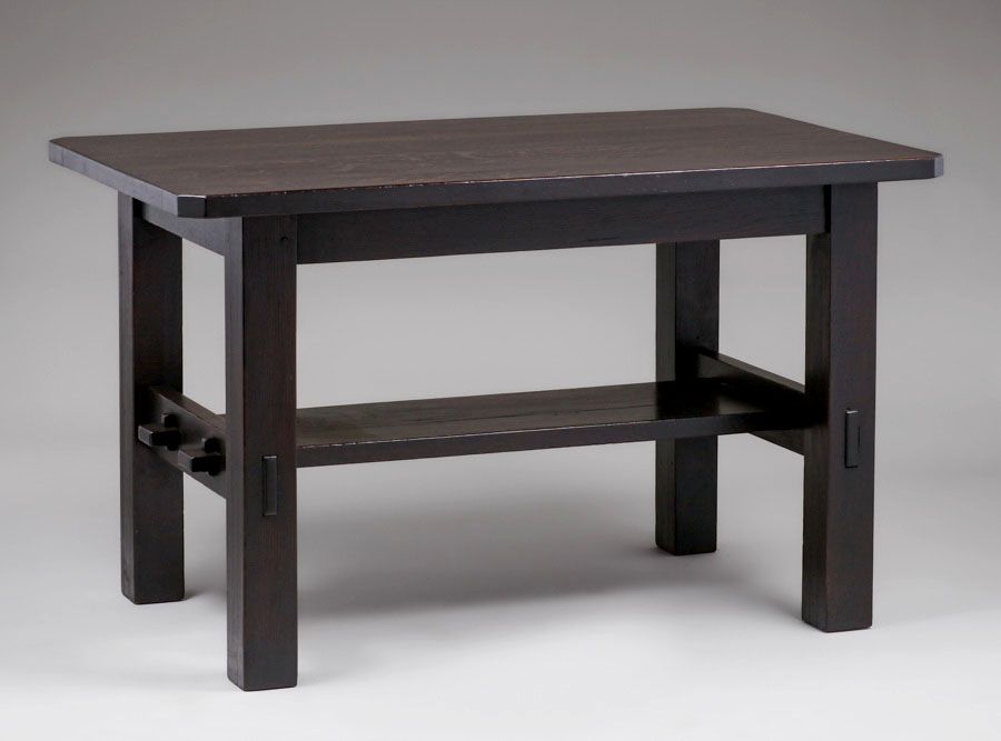 Earliest Gustav Stickley #433 Clip-Corner Library Table c1901. Unsigned. Most likely too early to be signed. Gustav Stickley did not start signing his pieces until November 0f 1901. Excellent black ebonized original finish. 48"w x 30" x 29"h SOLD