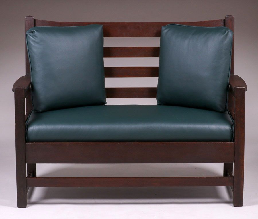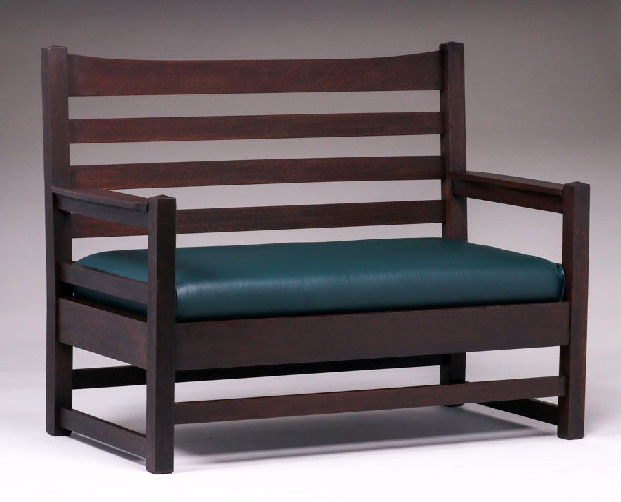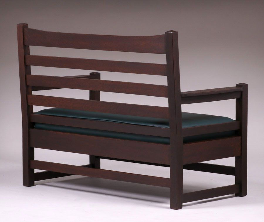 - Early Gustav Stickley #161 Ladderback Bench Settle c1902