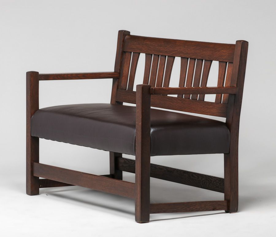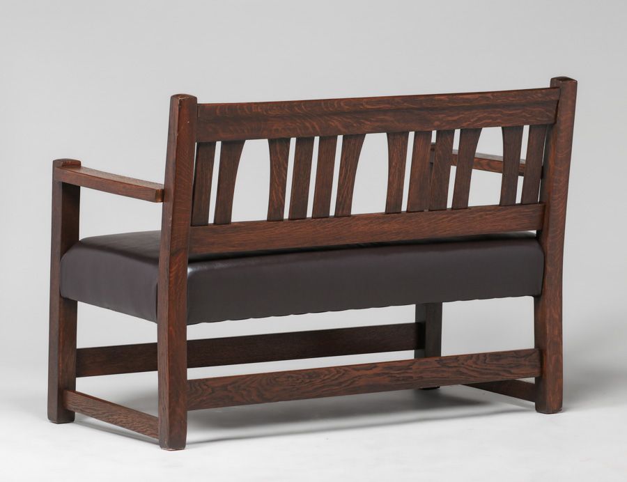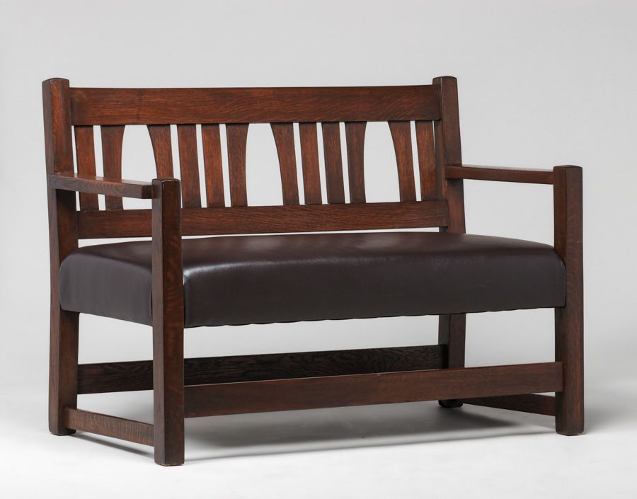 Early Gustav Stickley #164 Hall Seat c1901. Unsigned. Very nicely refinished. Rock solid sturdy. 49.75"w x 35.5"h x 24.5"d SOLD