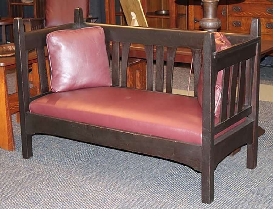 - Early Gustav Stickley #165 "Divan" Pencil-Post Settle c1901