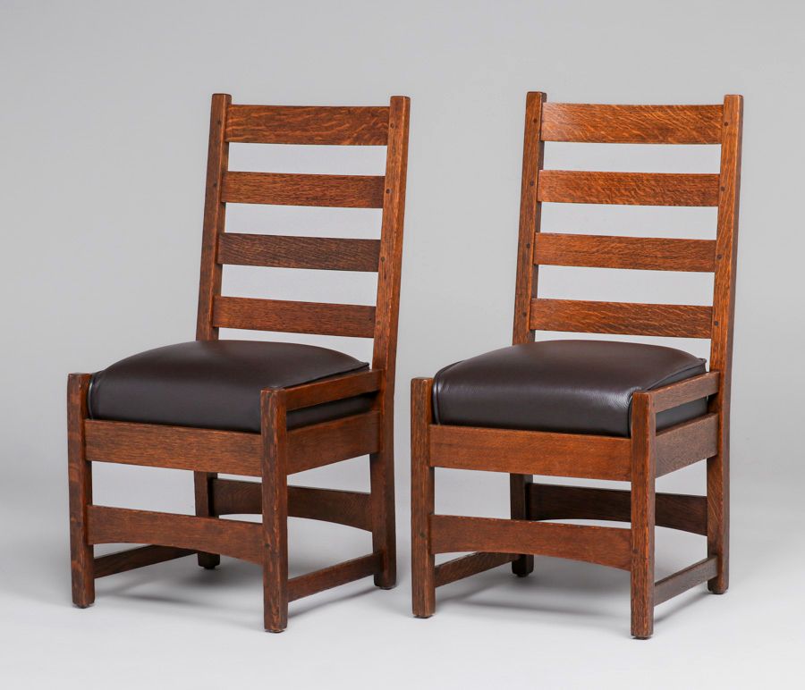 - Early Gustav Stickley #2608 Tall Ladderback Side Chairs c1902