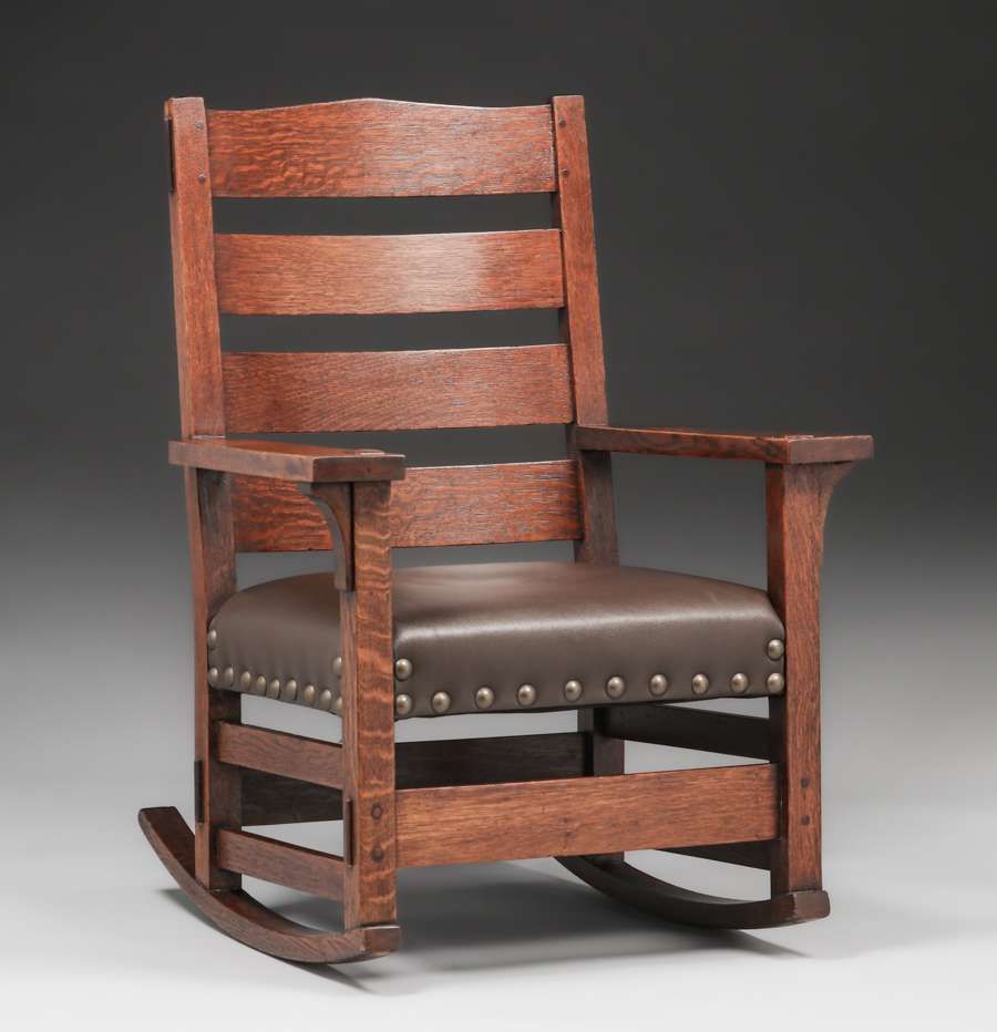 Early Gustav Stickley #2631 Rocker c1902. Unsigned. Original finish. 39"h x 27.5"w x 28"d SOLD