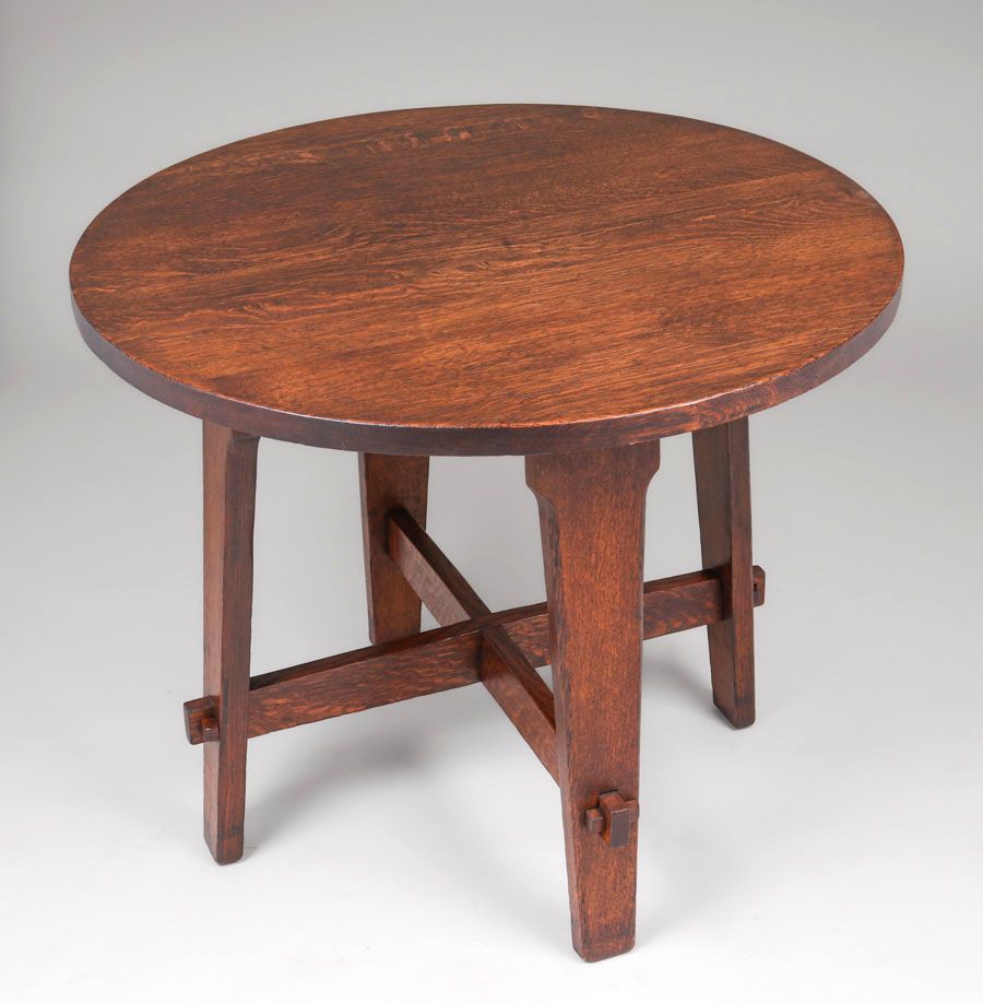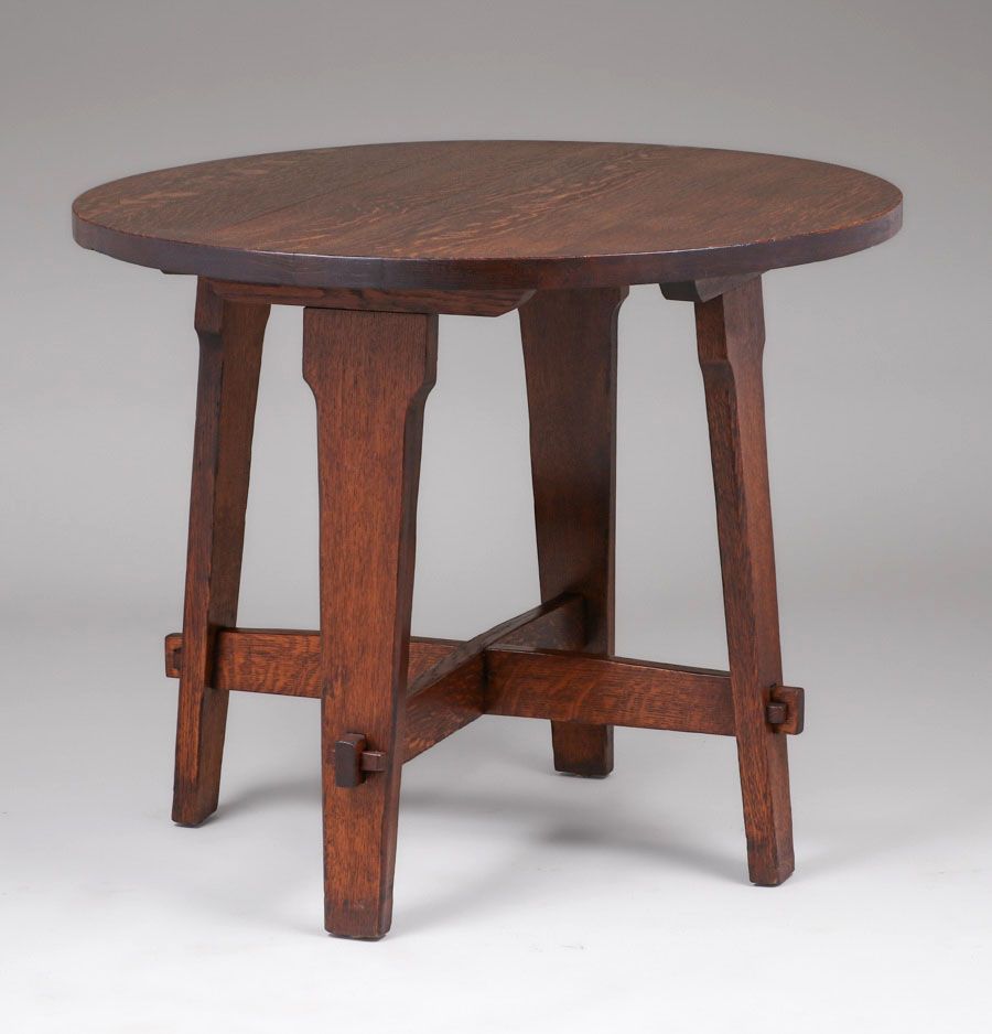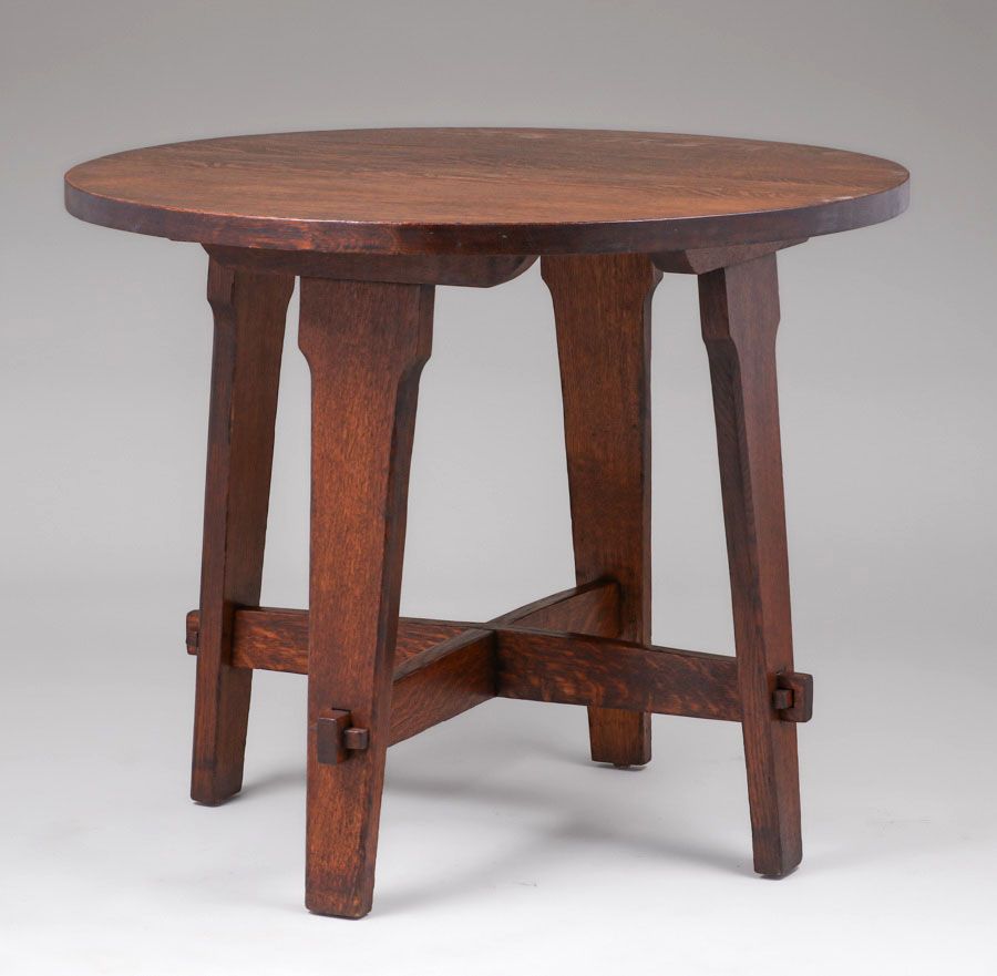 Early Gustav Stickley #412 Lamp Table c1901. Unsigned (too early to be signed). Excellent original finish. 36"d x 29"h SOLD