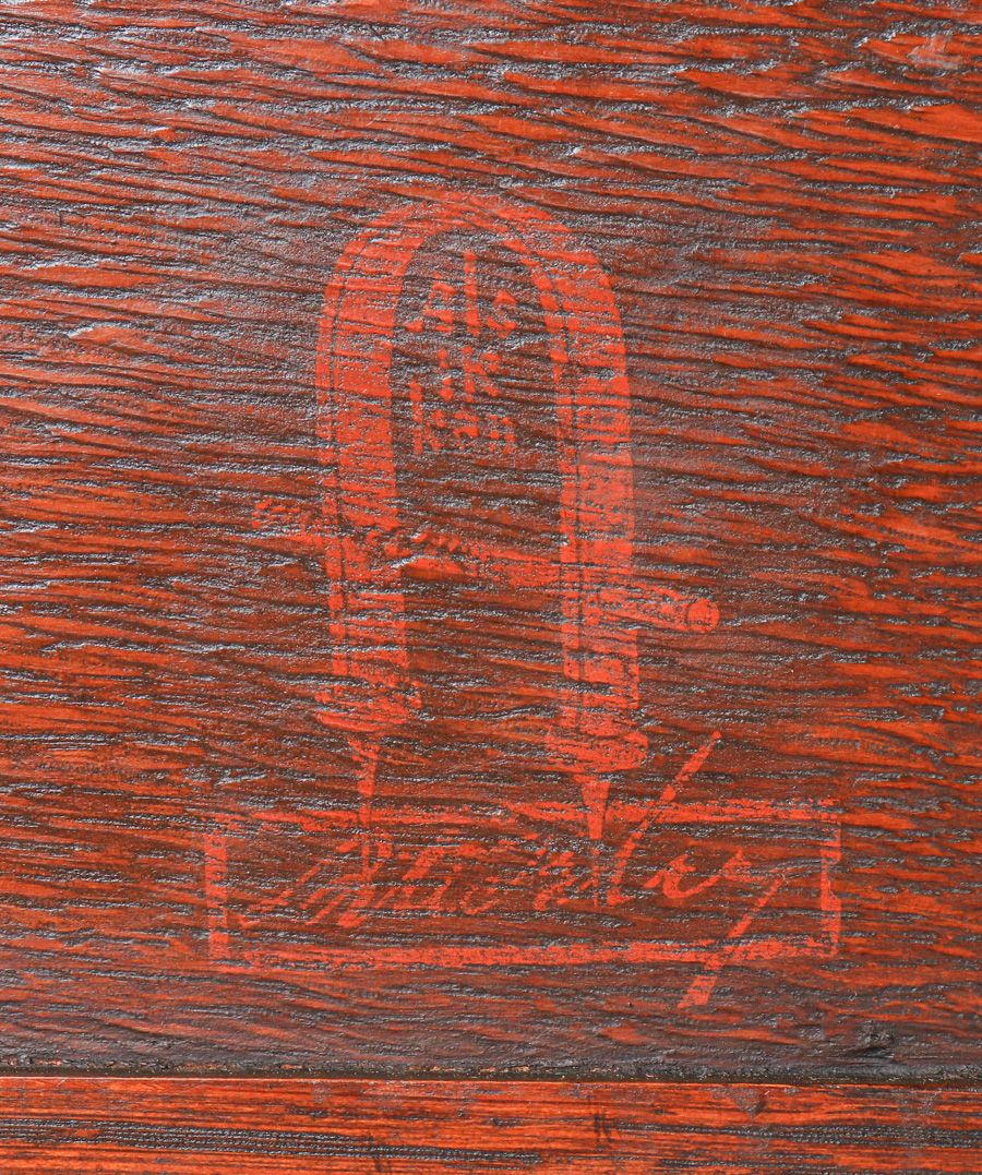 Early Gustav Stickley #518 Strap-Hinge Desk c1902. Signed. Small stain to top. Excellent original finish. 51.5"h x 26"w x 11"d