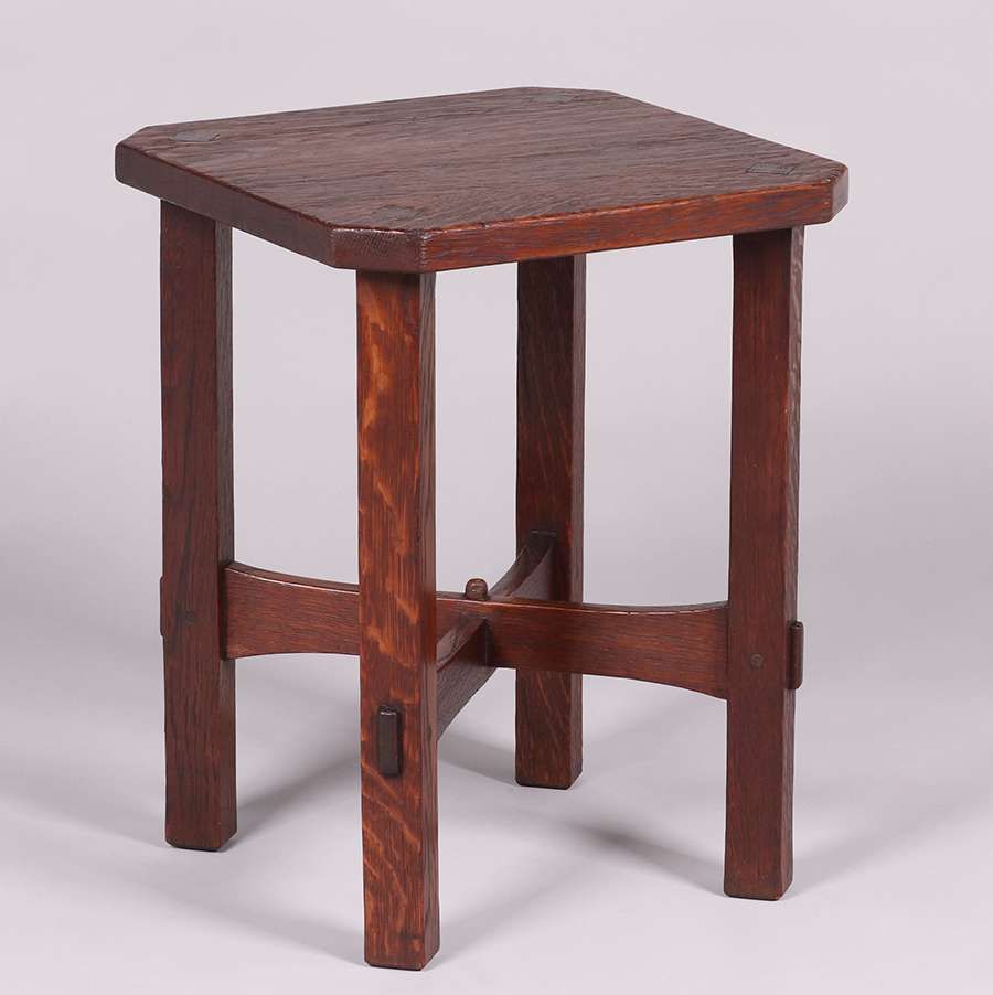 Early Gustav Stickley #52 Plant Stand c1902. Unsigned. Rubbed out original finish. 22"h x 17" x17" SOLD