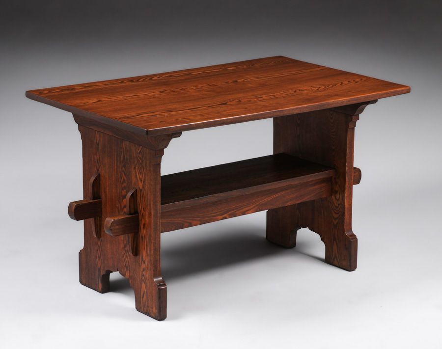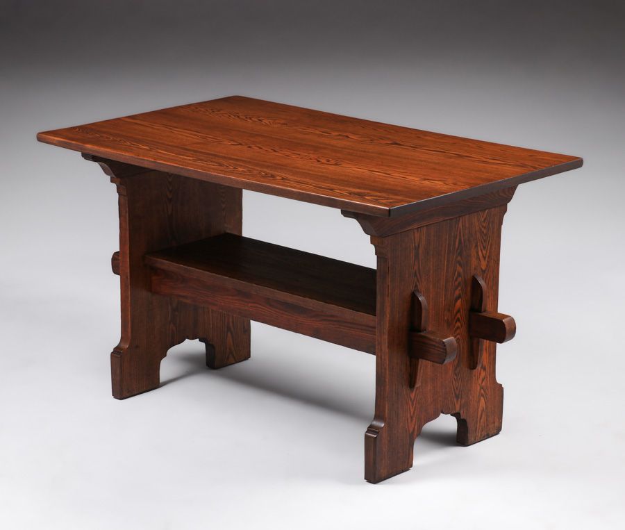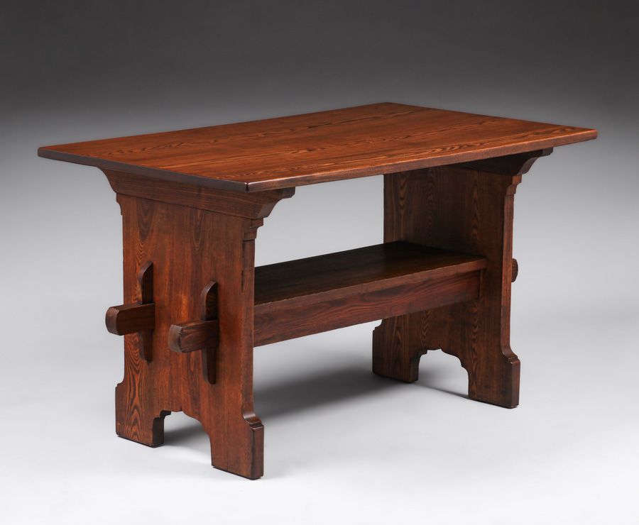 Early Gustav Stickley Chestnut Bungalow Trestle Table c1901. Unsigned. Very nicely refinished. 48"w x 29.5"w x 28.75"h $5500