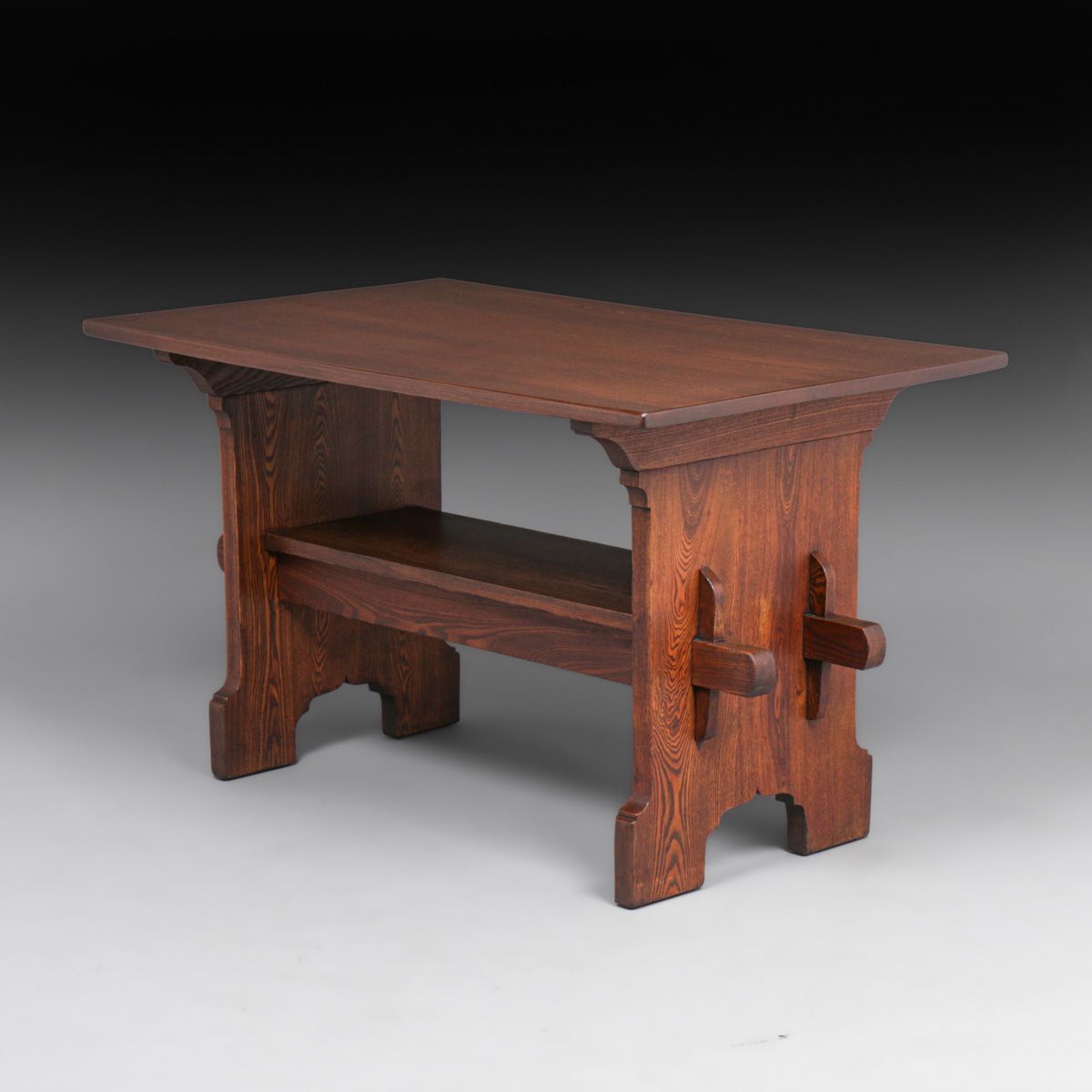 - Early Gustav Stickley Chestnut Bungalow Trestle Table c1901