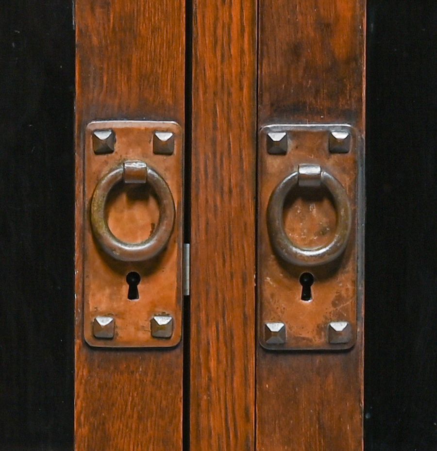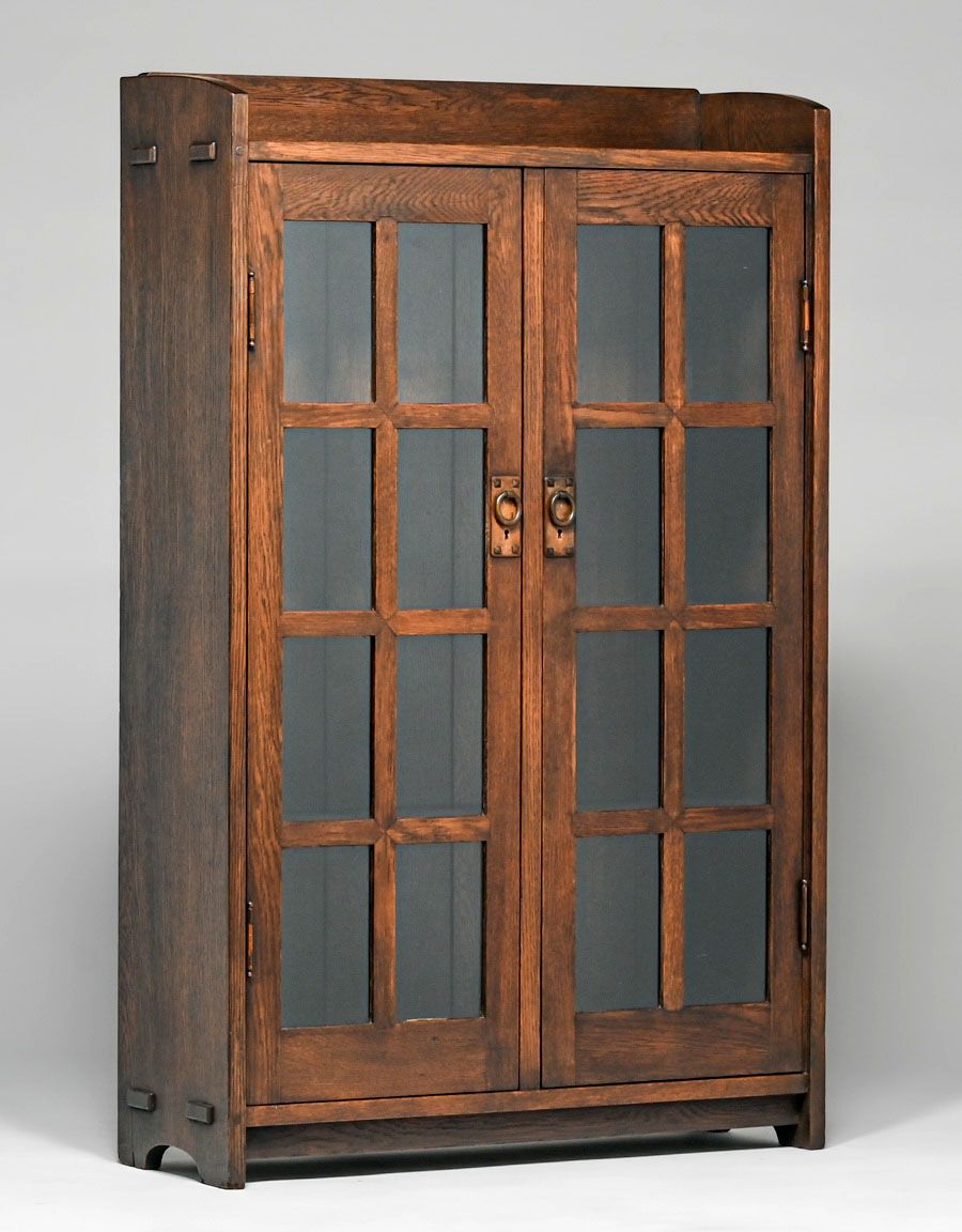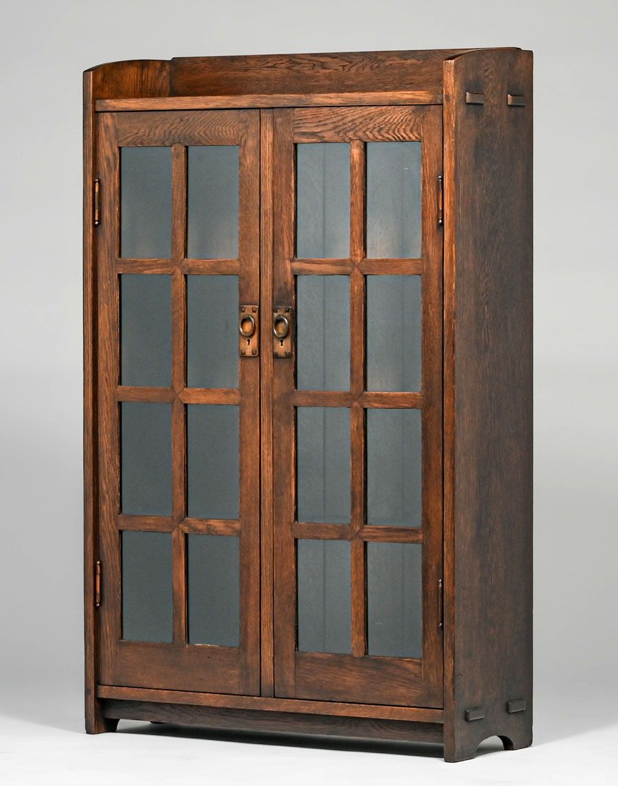 - Early Gustav Stickley Miter-Mullion Two-Door Bookcase c1902