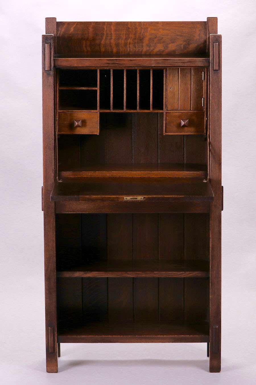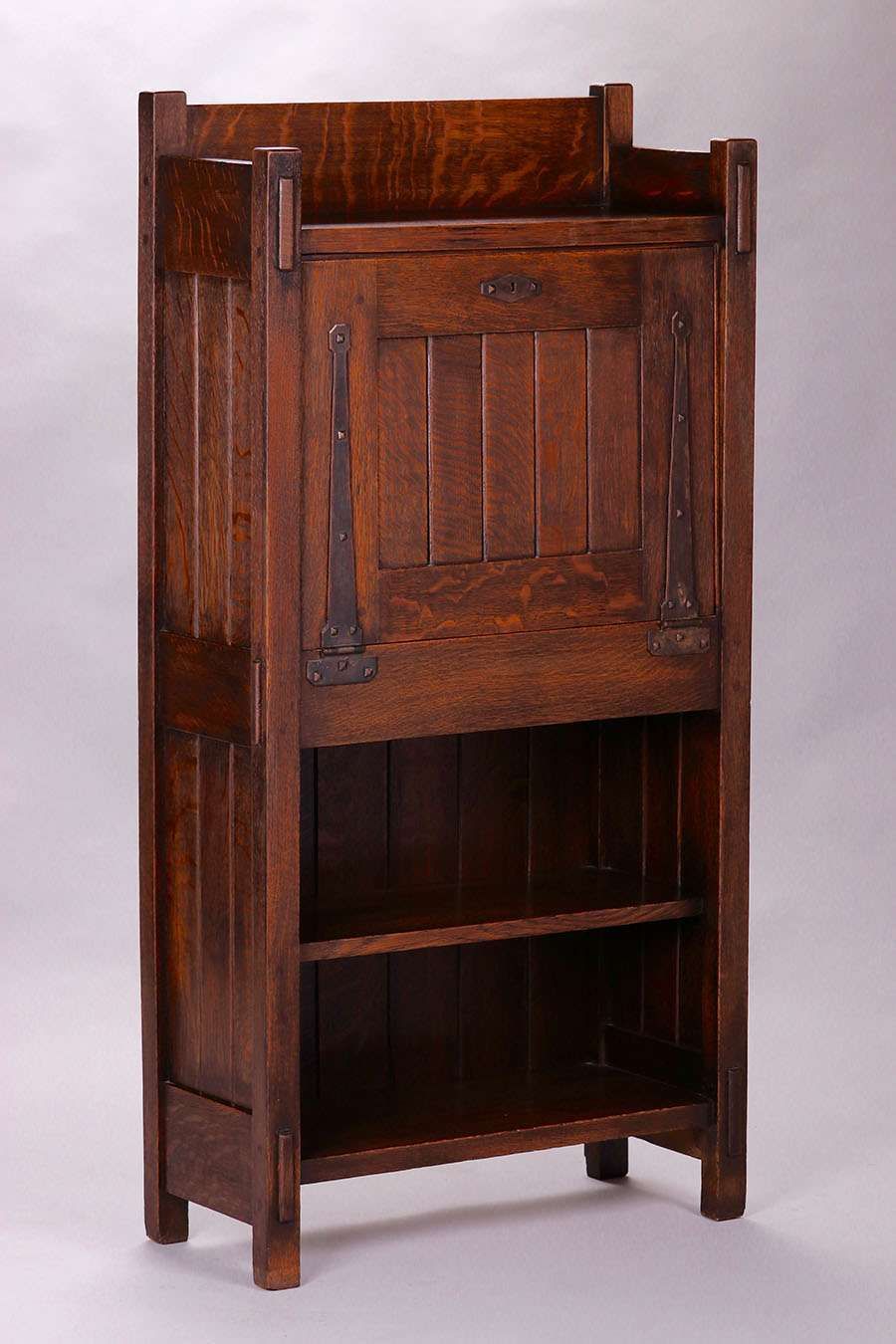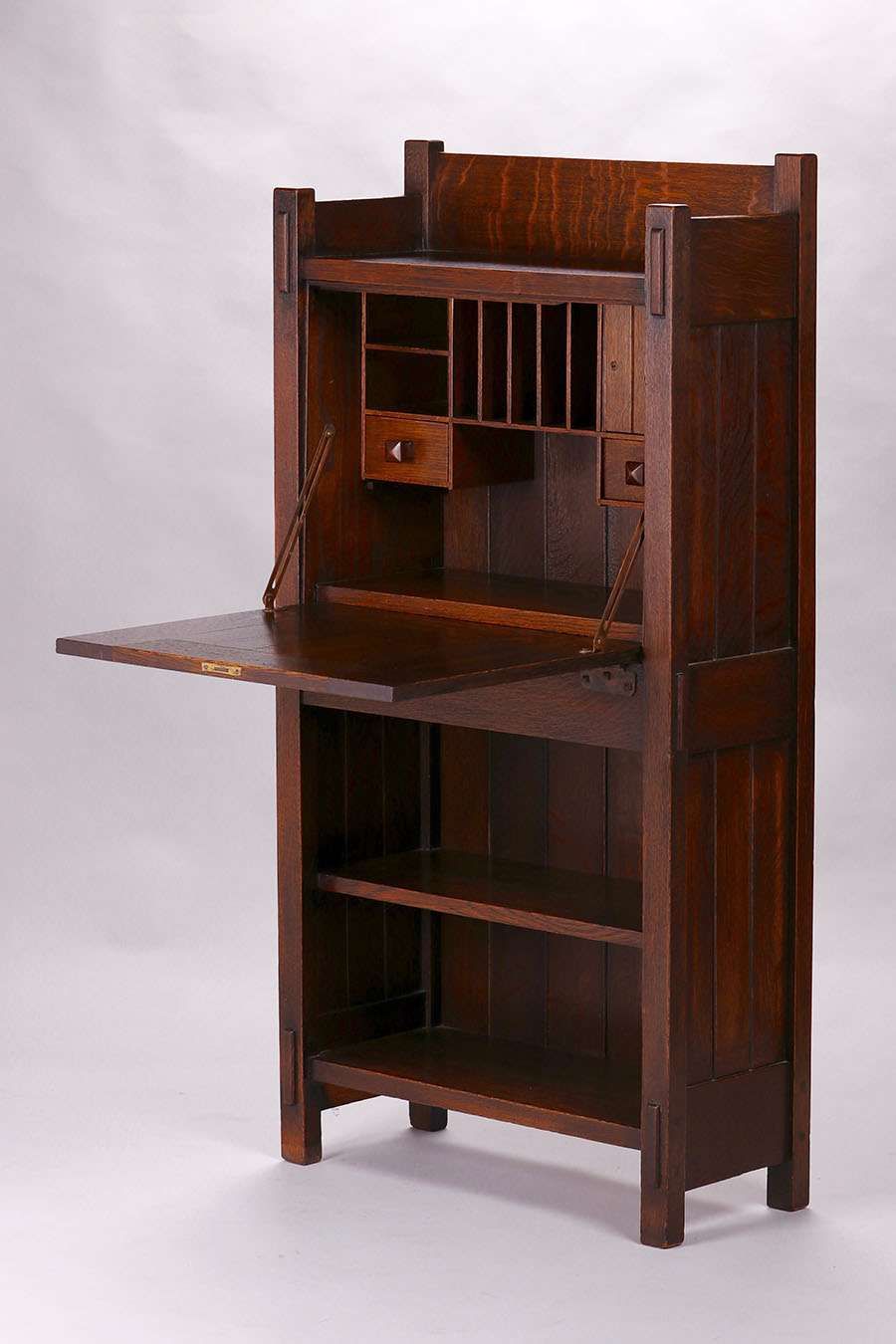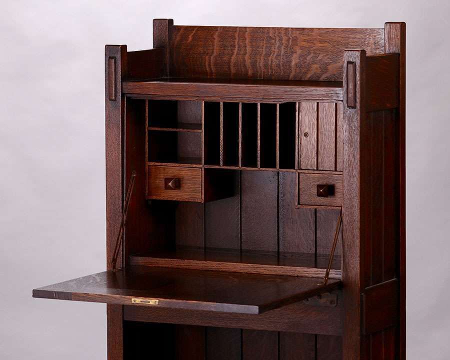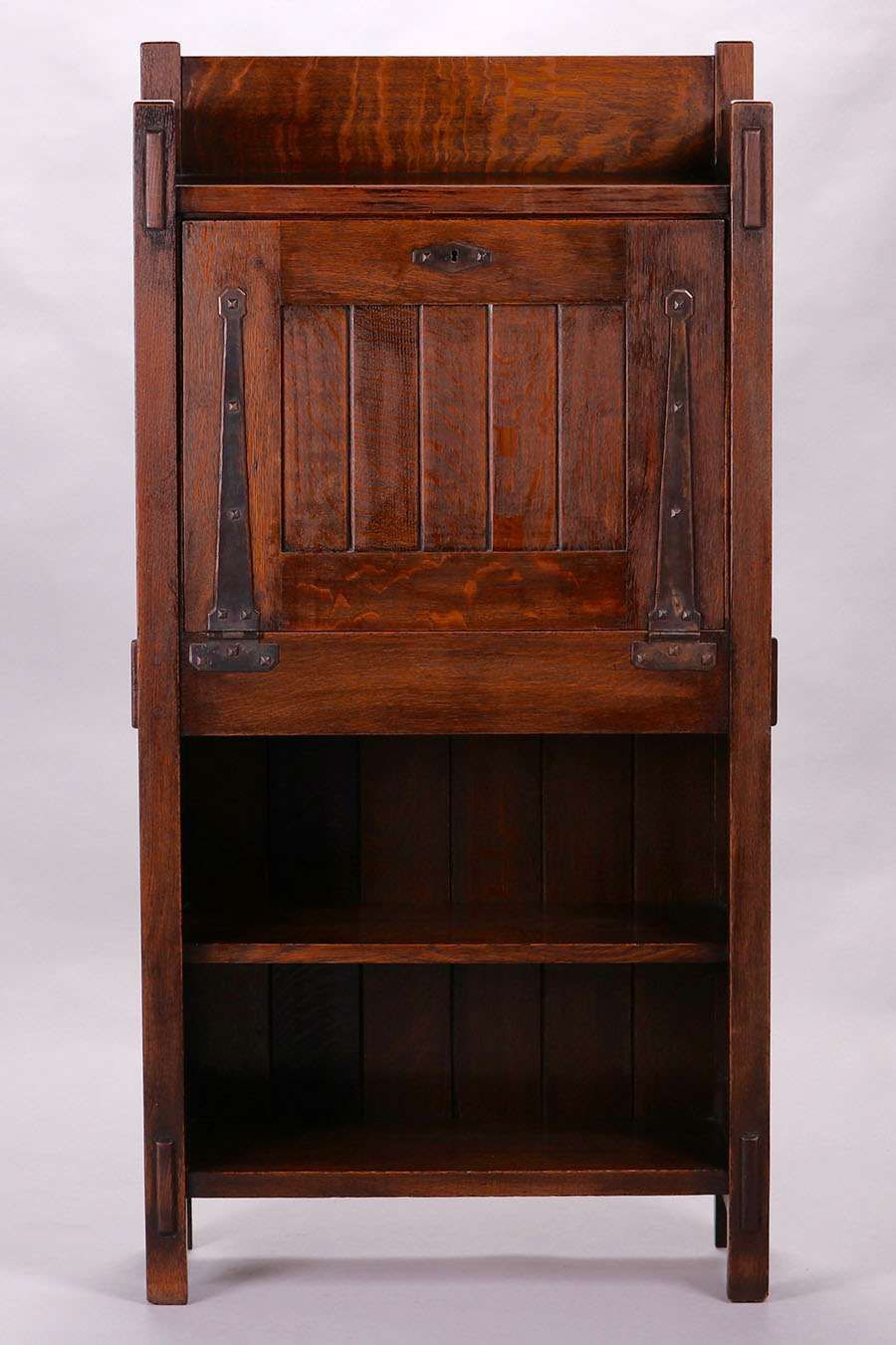 - Early Gustav Stickley Strap-Hinge Dropfront Desk c1901-1902