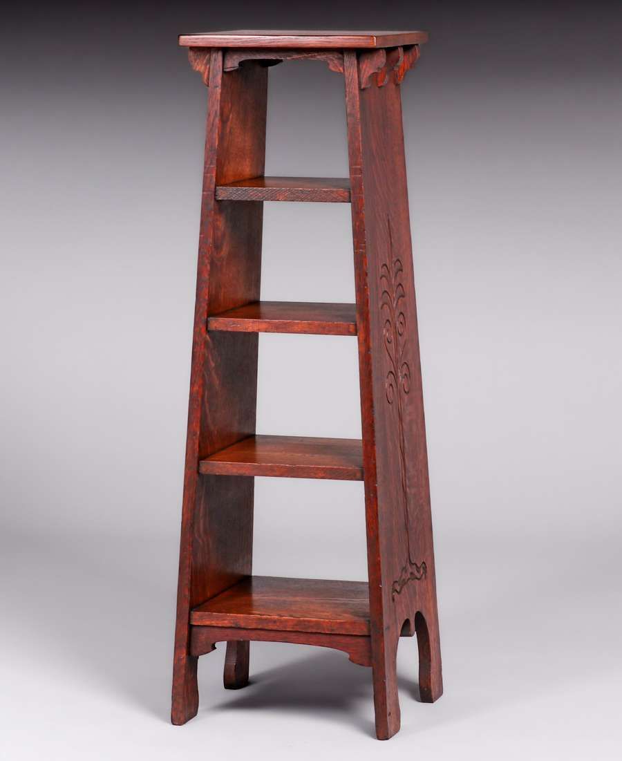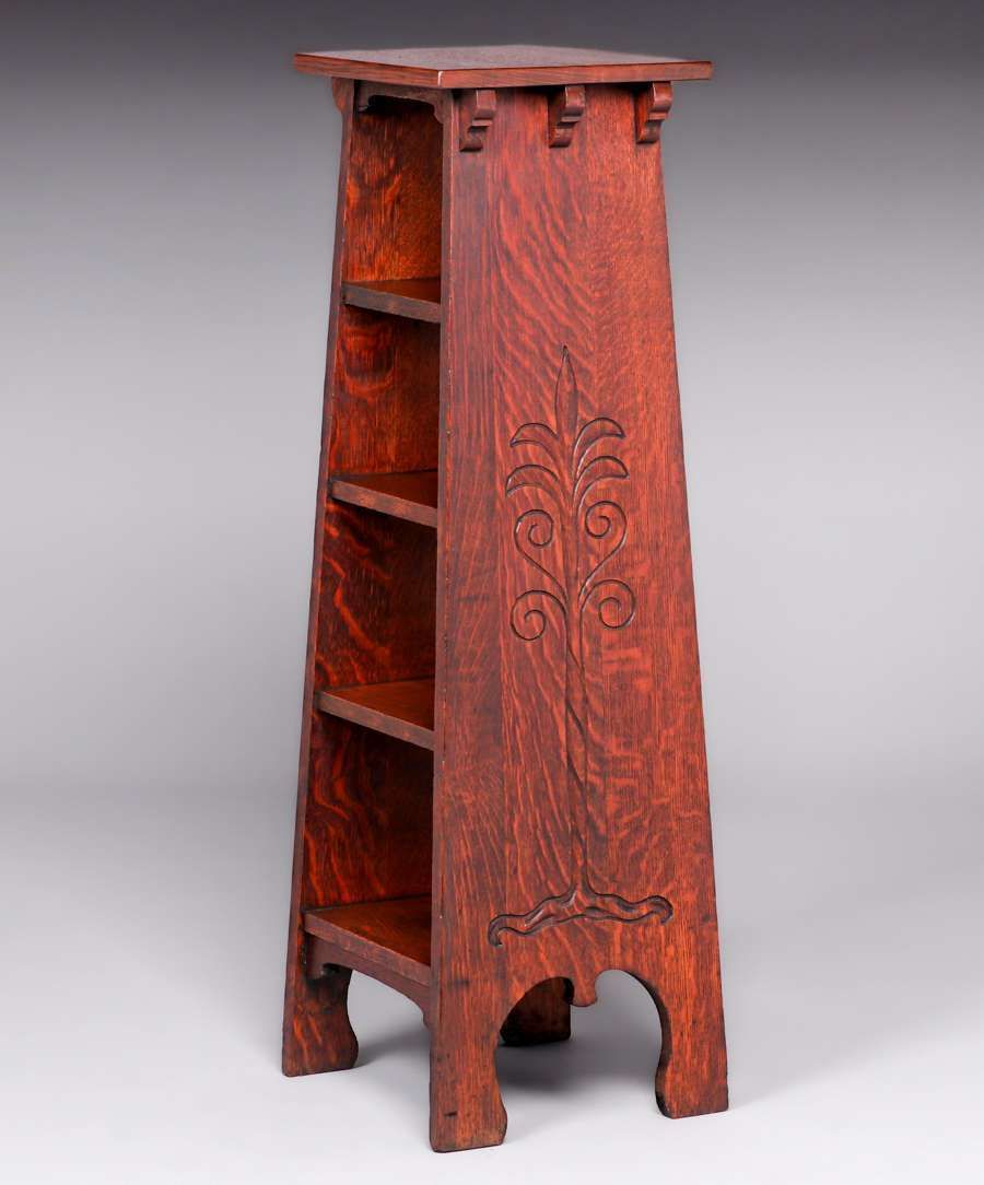 - Early Gustav Stickley Tree-of-Life Magazine Stand c1900