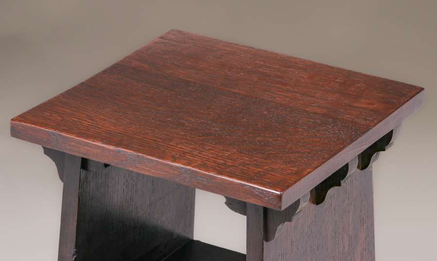 Early Gustav Stickley Tree-of-Life Magazine Stand c1900. Top refinished perfectly to match original finish. 43.5″h x 13″ square SOLD