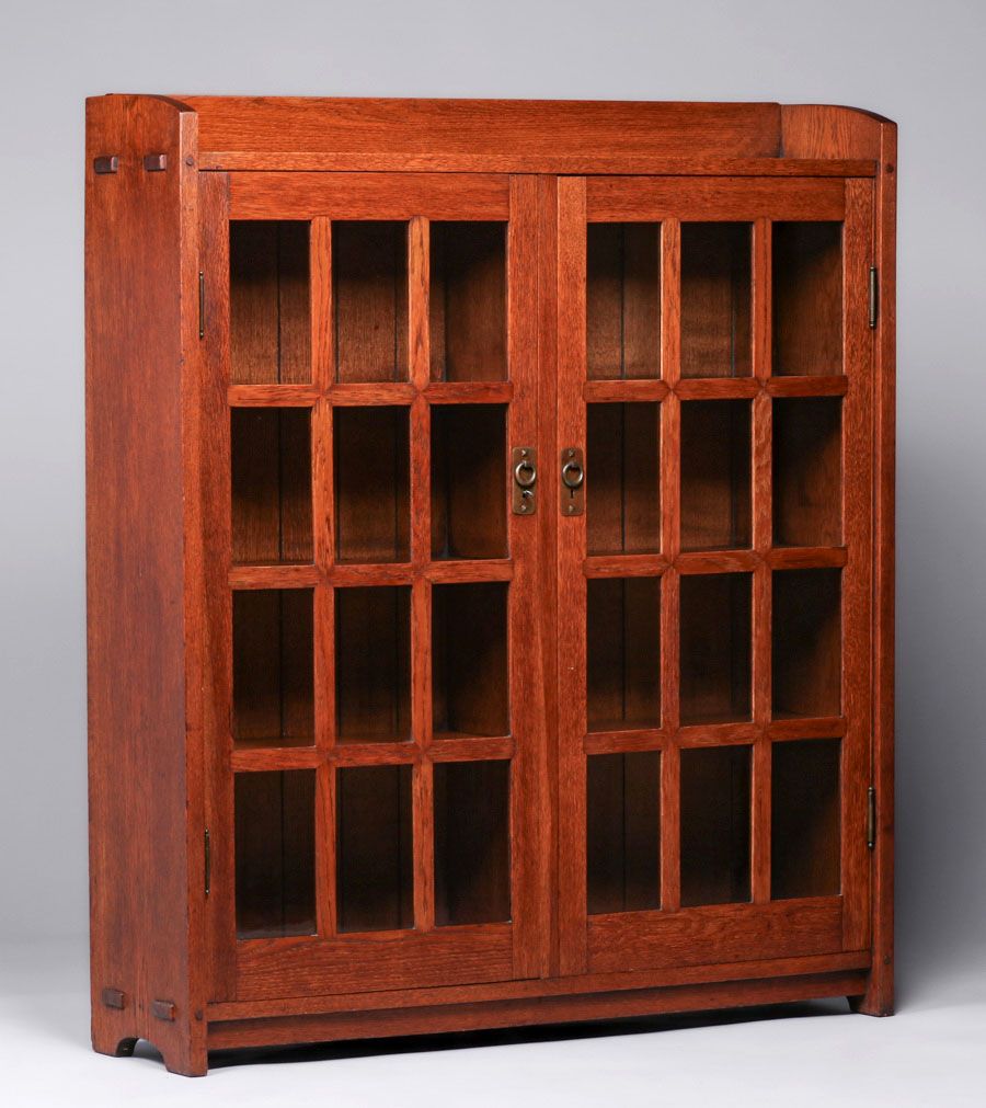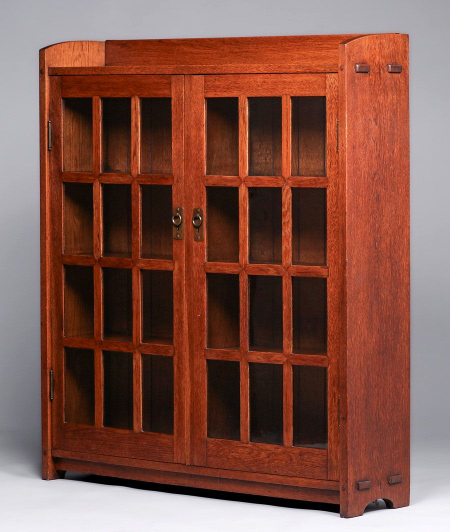 - Early Gustav Stickley Two-Door Miter-Mullion Bookcase c1902