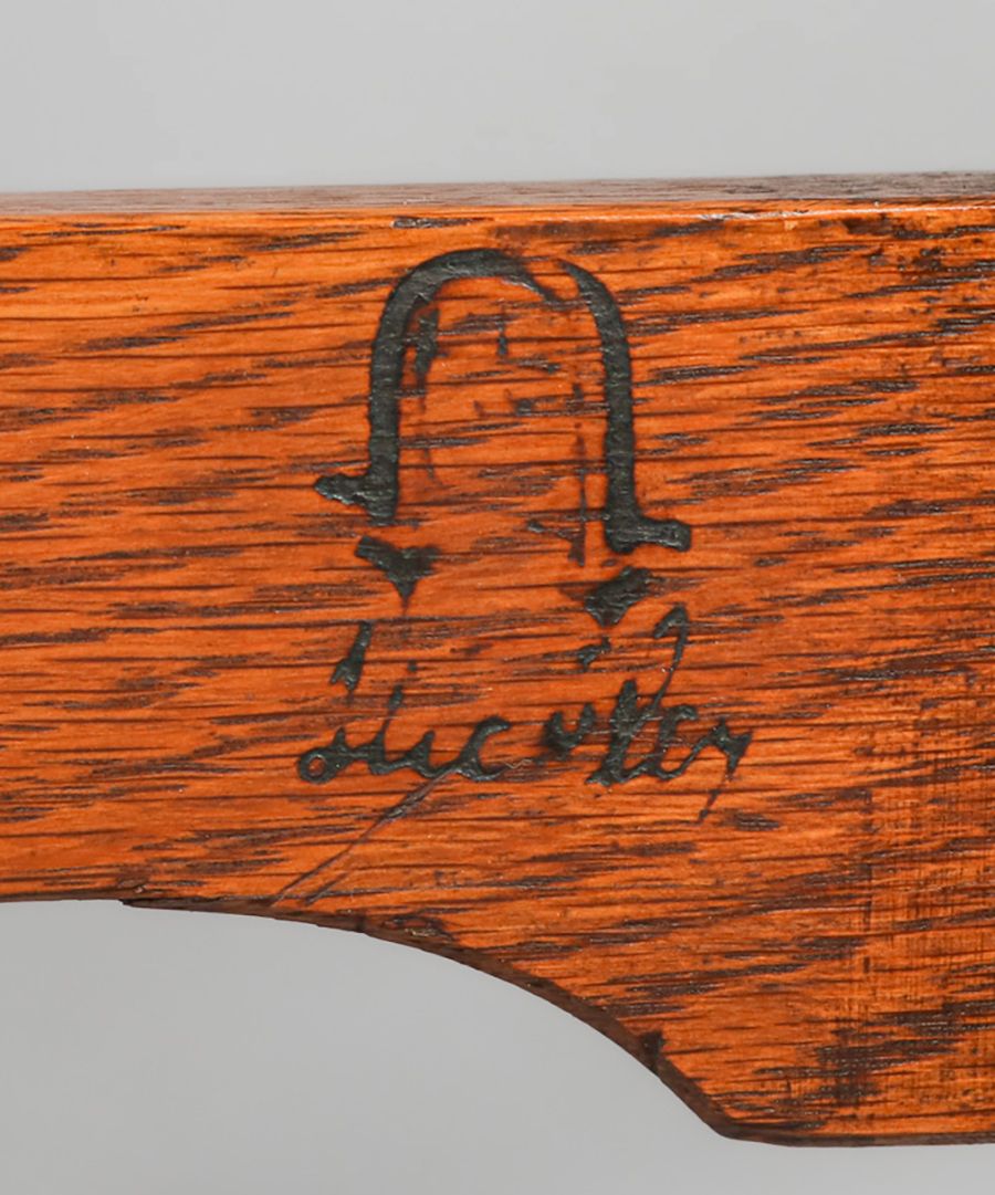 Gustav Stickley 24"d Lamp Table c1912-1915. Signed with branded mark. Top refinished perfectly to match original finish. 24"d x 29"h SOLD