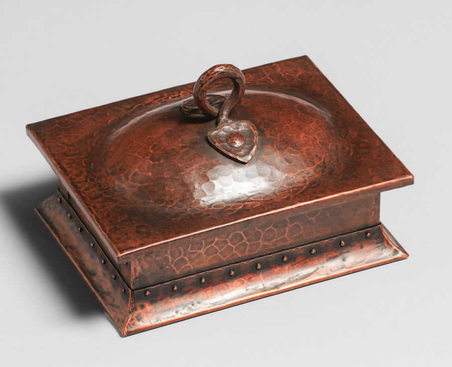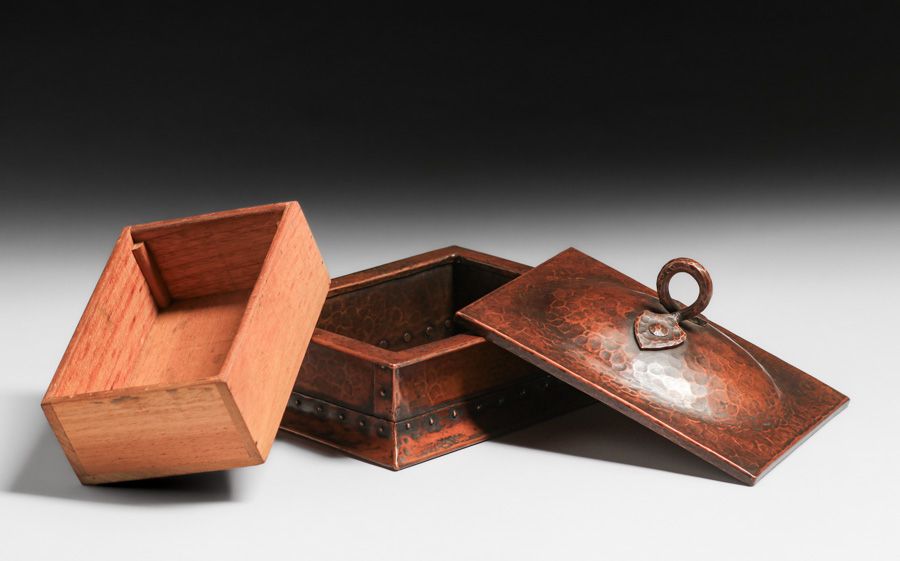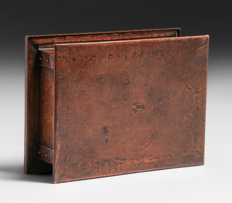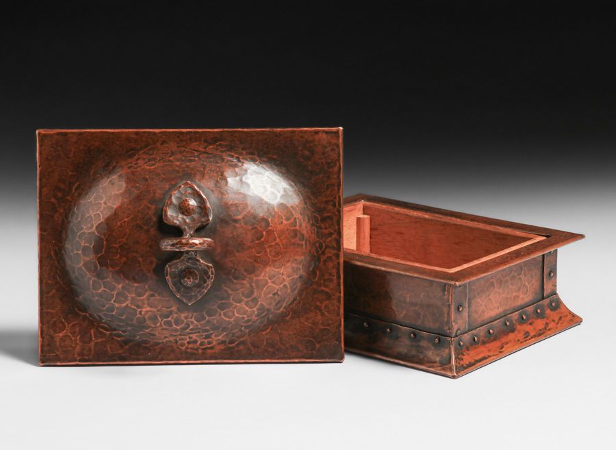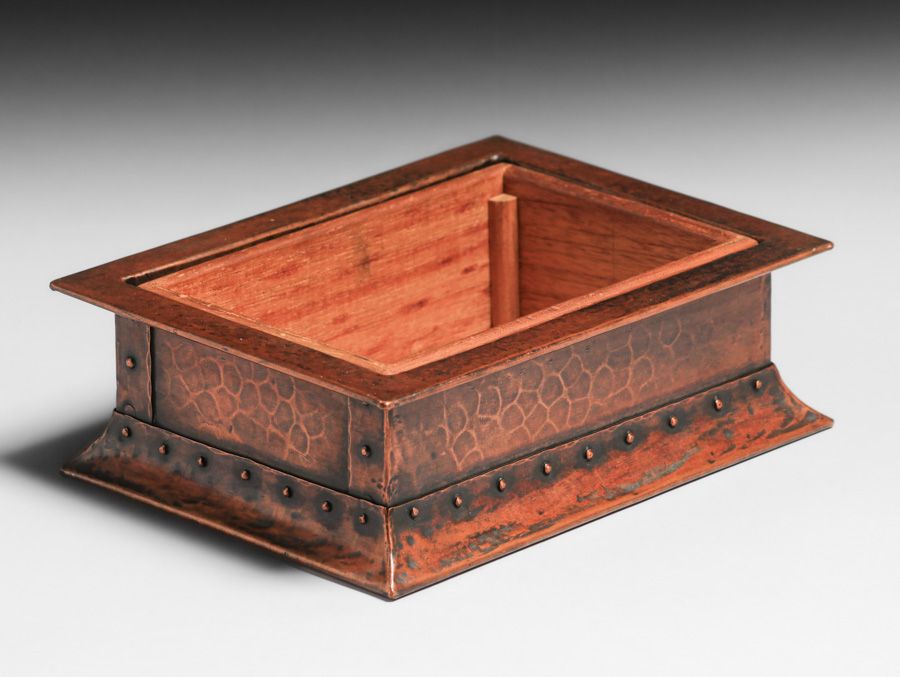- Gustav Stickley #268 Hammered Copper Cigar Box c1910