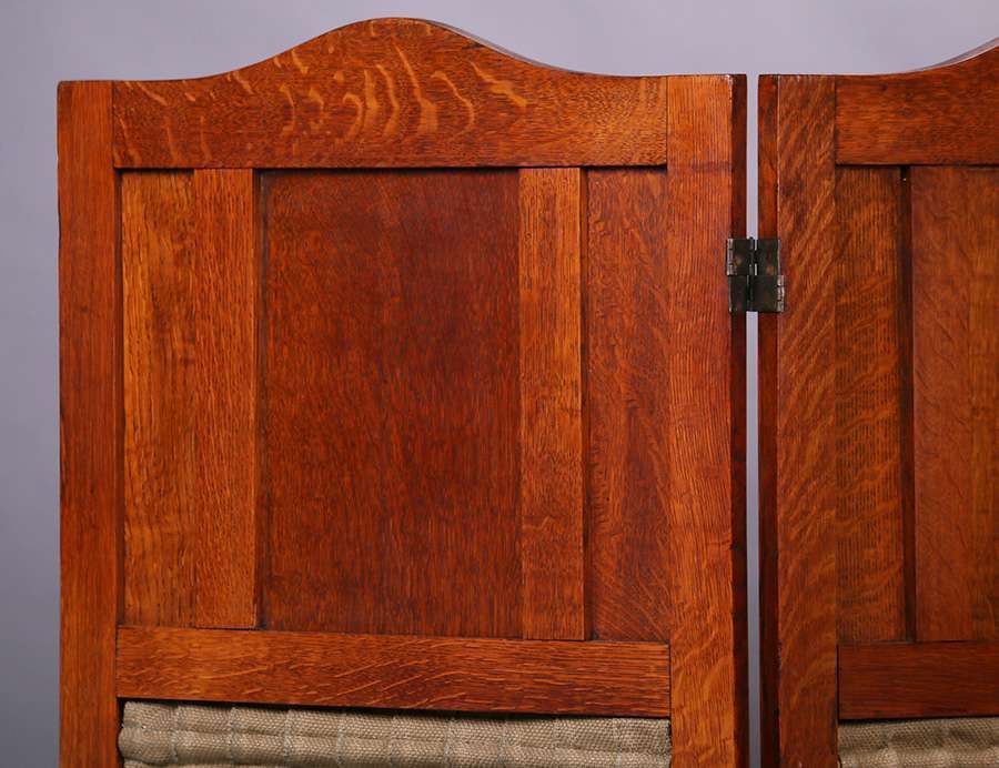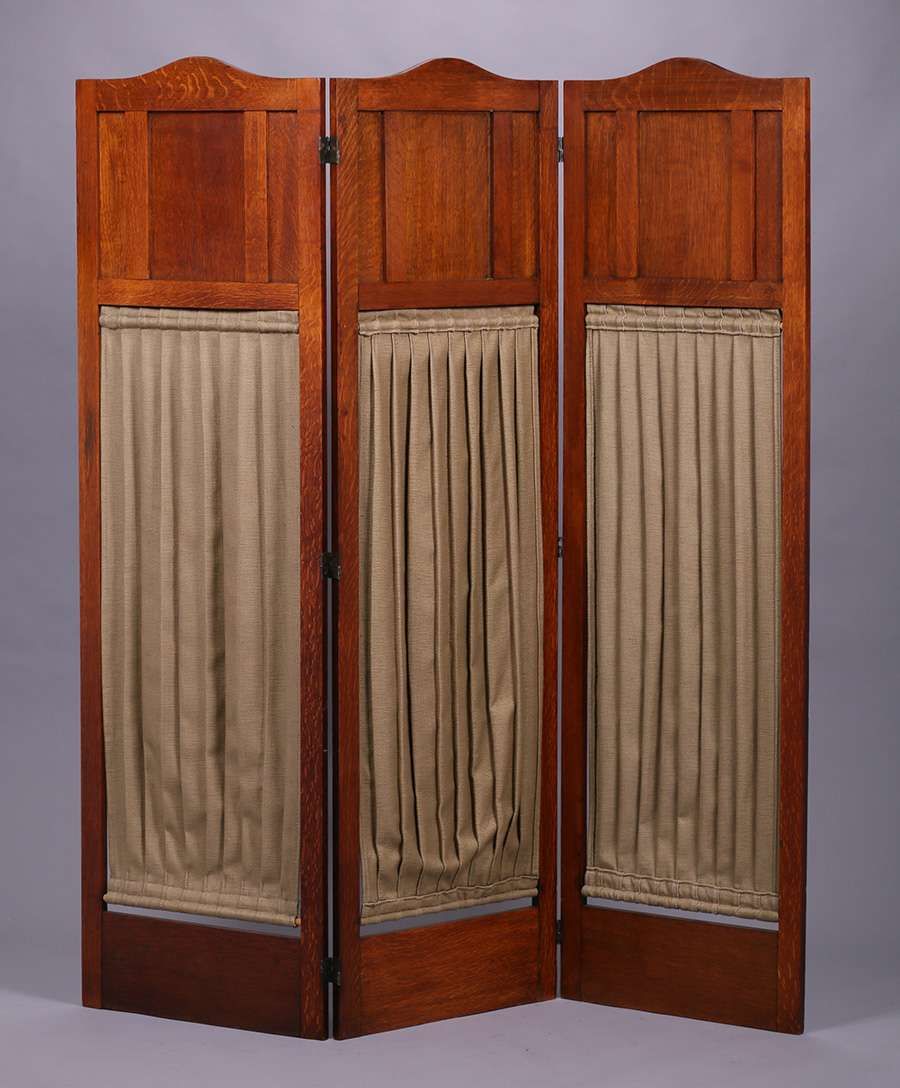 Gustav Stickley 3-panel screen. Excellent original finish. Unsigned. Each panel measures 67.5"h x 20"w SOLD