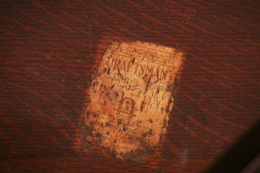 Gustav Stickley 30"d lamp table. Signed. Original finish. 30"d x 29.5"h SOLD