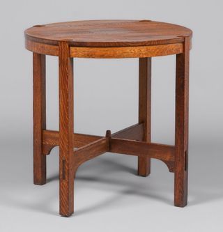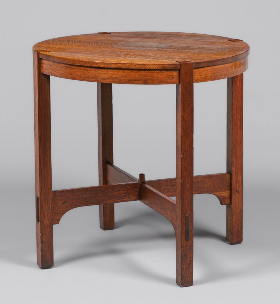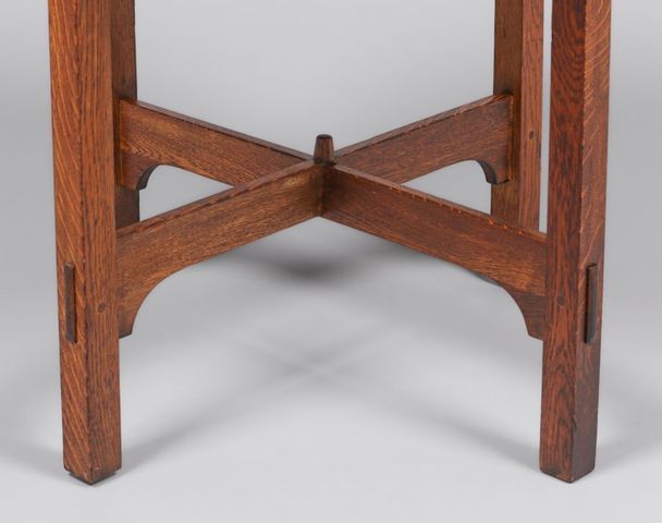 Gustav Stickley 30"d Lamp Table c1910. Unsigned. Excellent original finish. Very sturdy. 30"d x 29"h SOLD