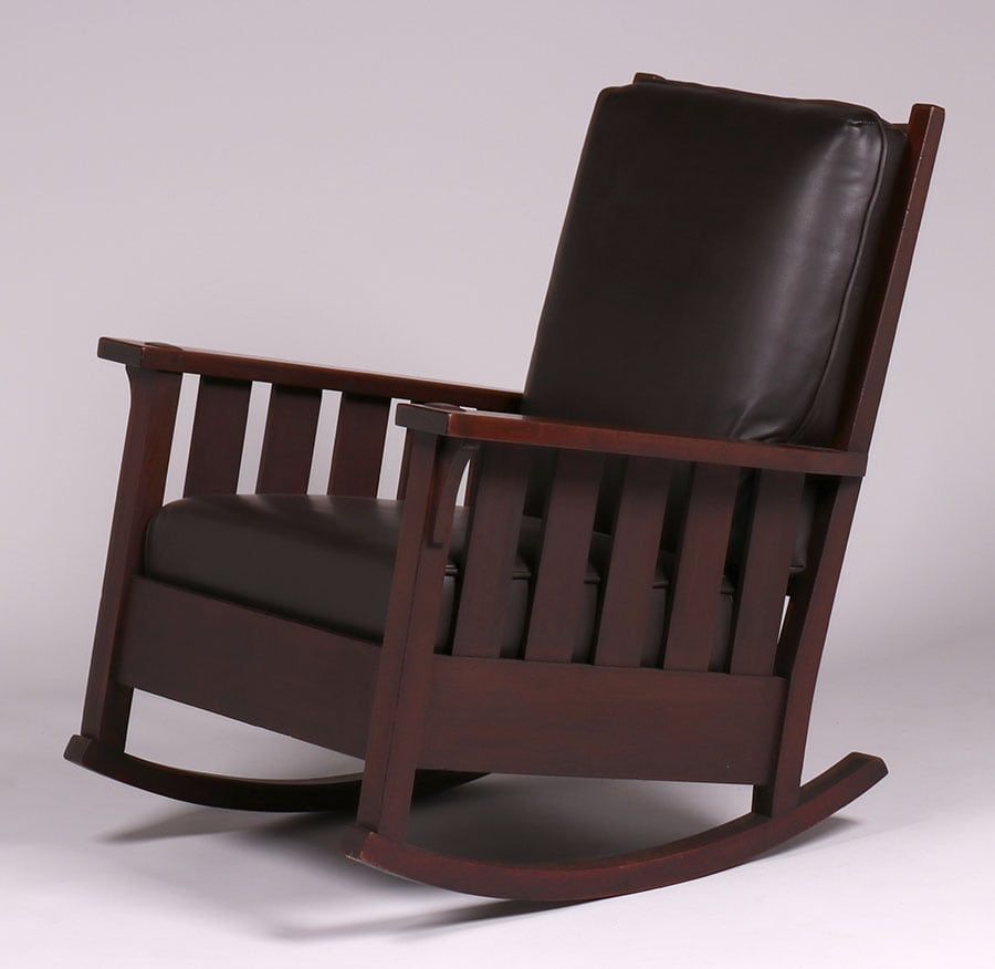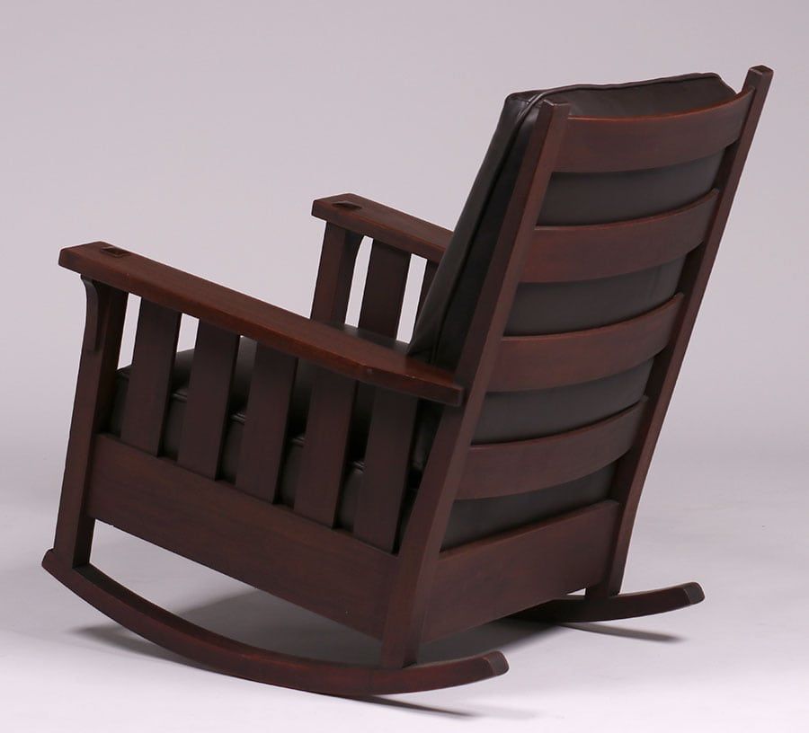 - Gustav Stickley #323 Mahogany Slatted Rocker c1904