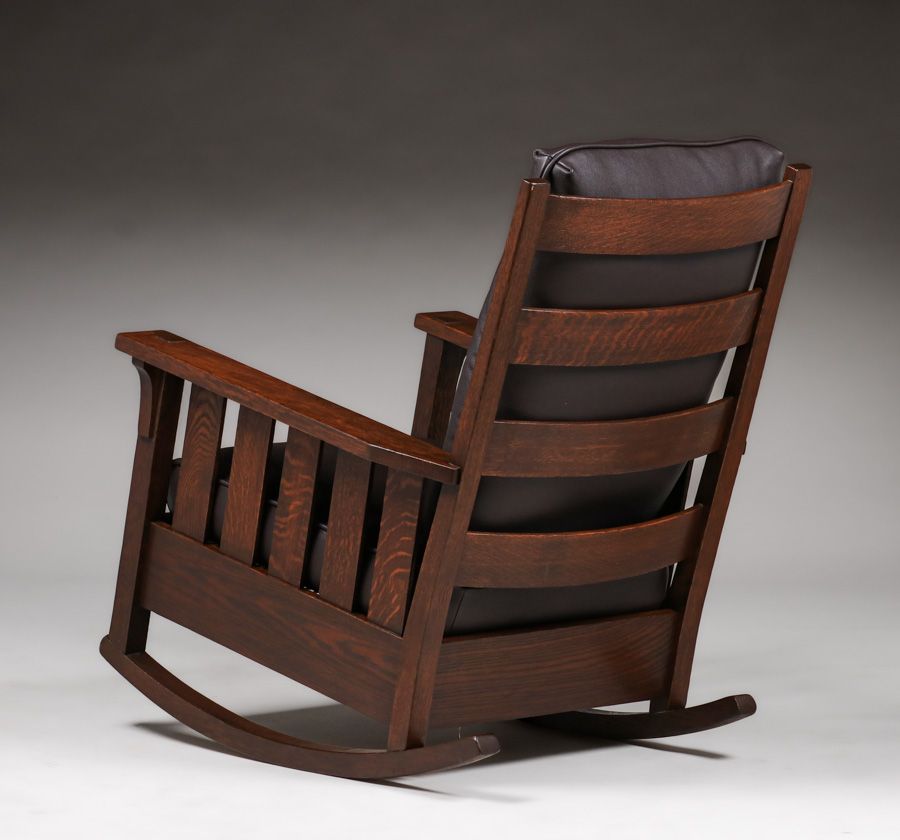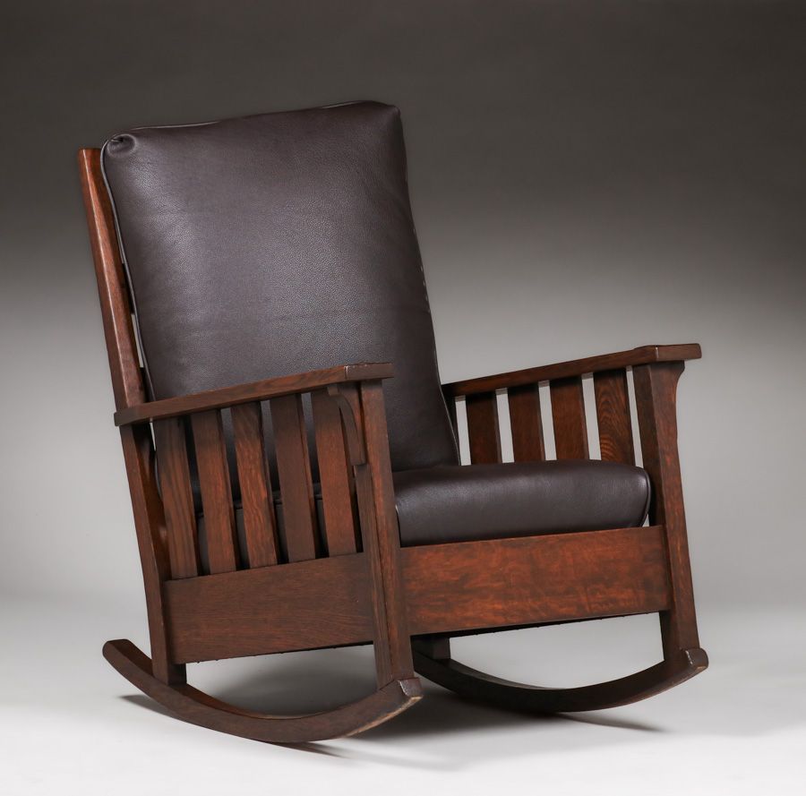 Gustav Stickley #323 Slatted Rocker c1910. Signed. Very nicely refinished. 39.75"h x 29"w x 34"d