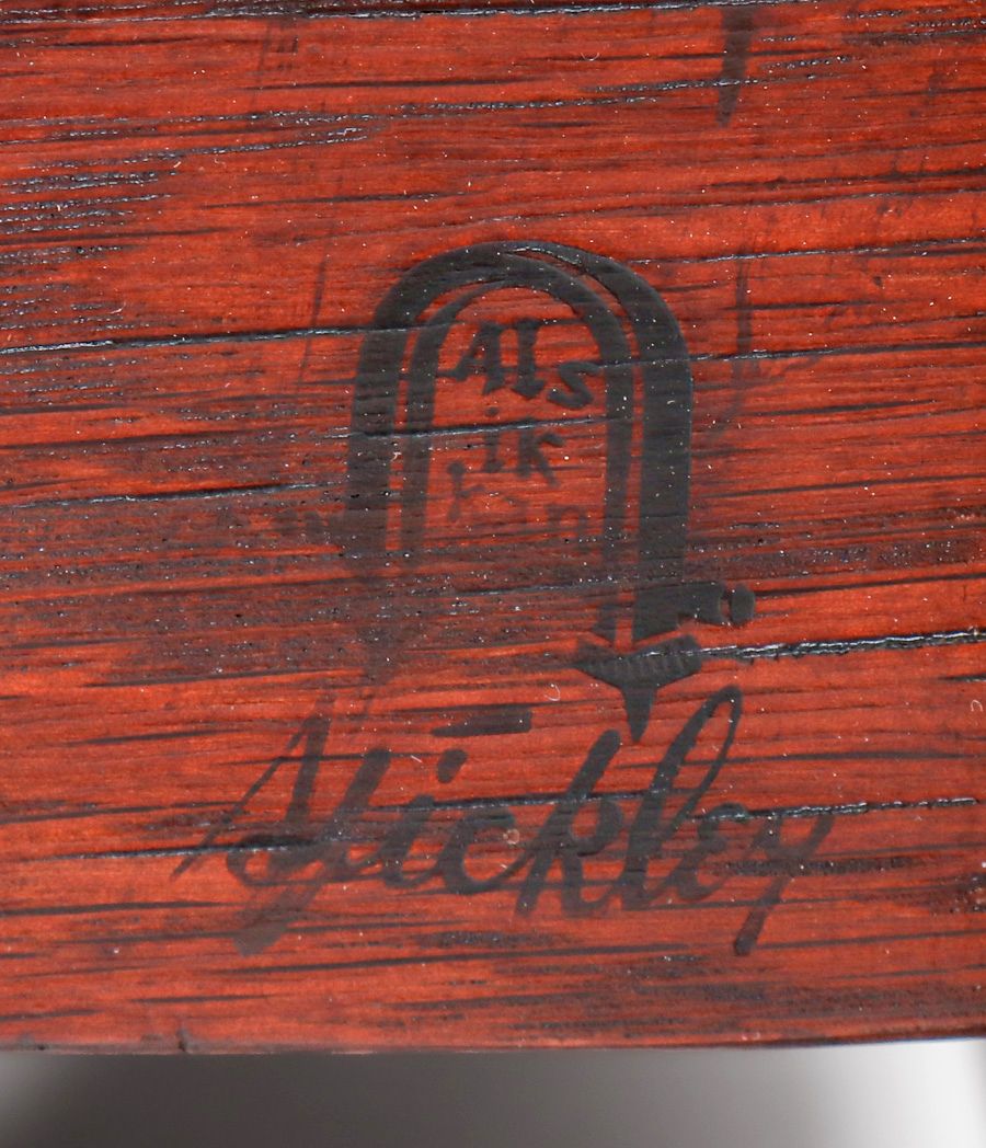 Gustav Stickley #332 Slatted Morris Chair c1912-1915. Signed with branded mark. Excellent original finish. An excellent example of this classic morris chair. 42"h x 31"w x 38"d SOLD