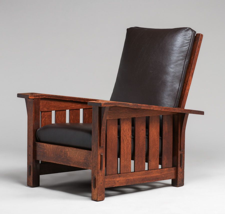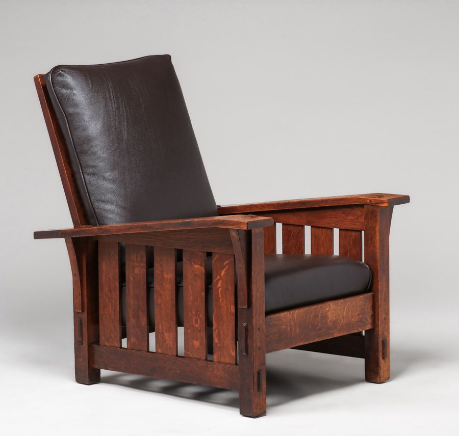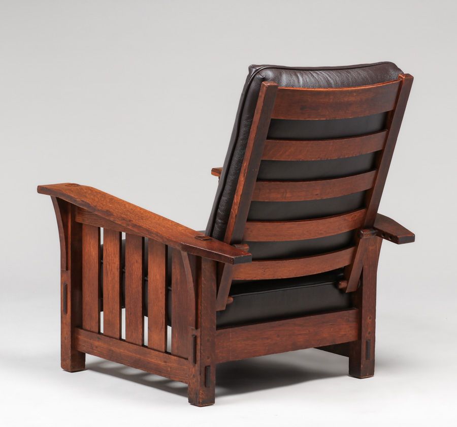 - Gustav Stickley #369 Bentarm Slatted Morris Chair c1905